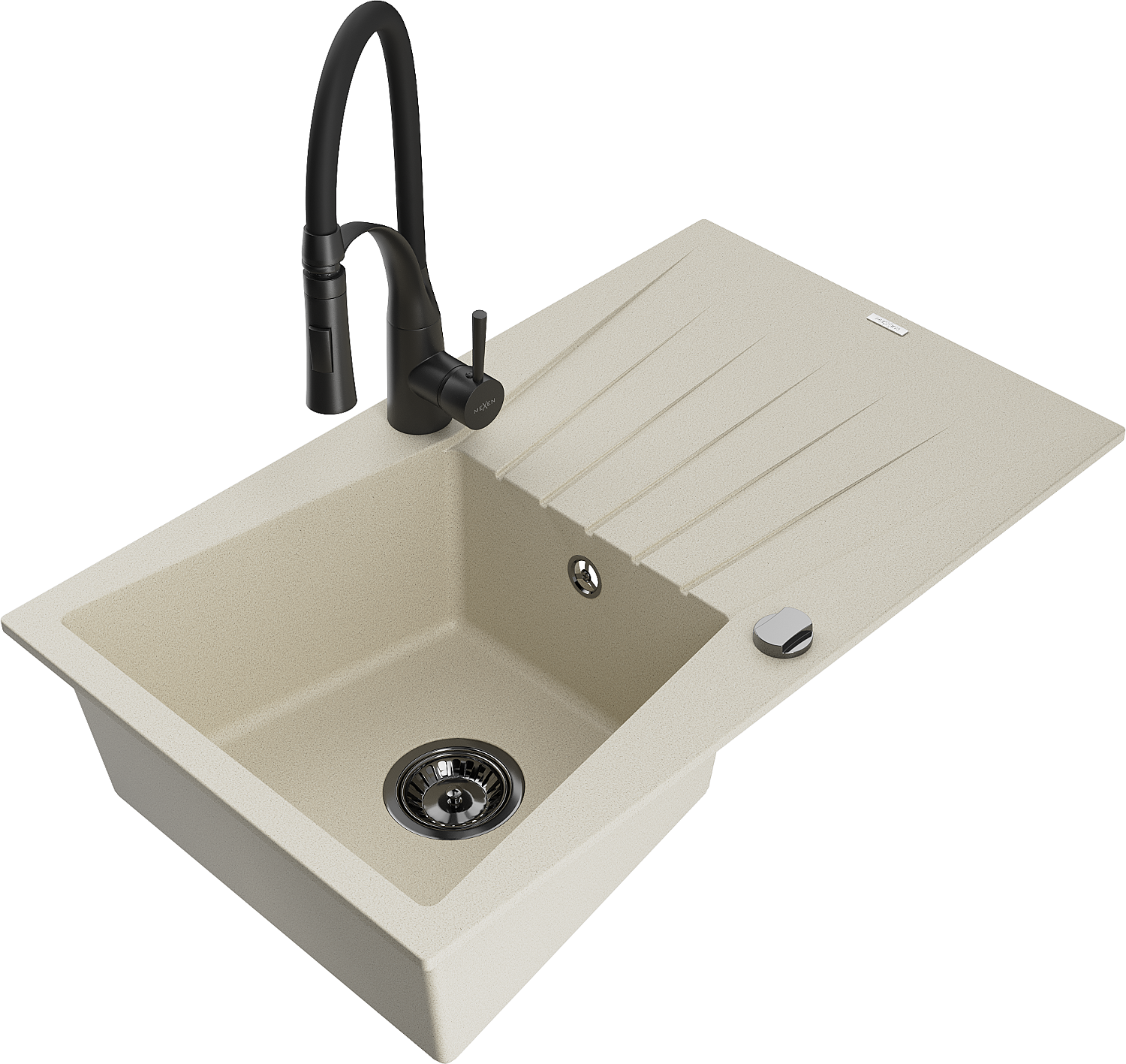 Mexen Cesar гранитна кухненска мивка с 1 камера с отцедник и кухненски смесител Aster, бежов - 6514-69-73450-70-B