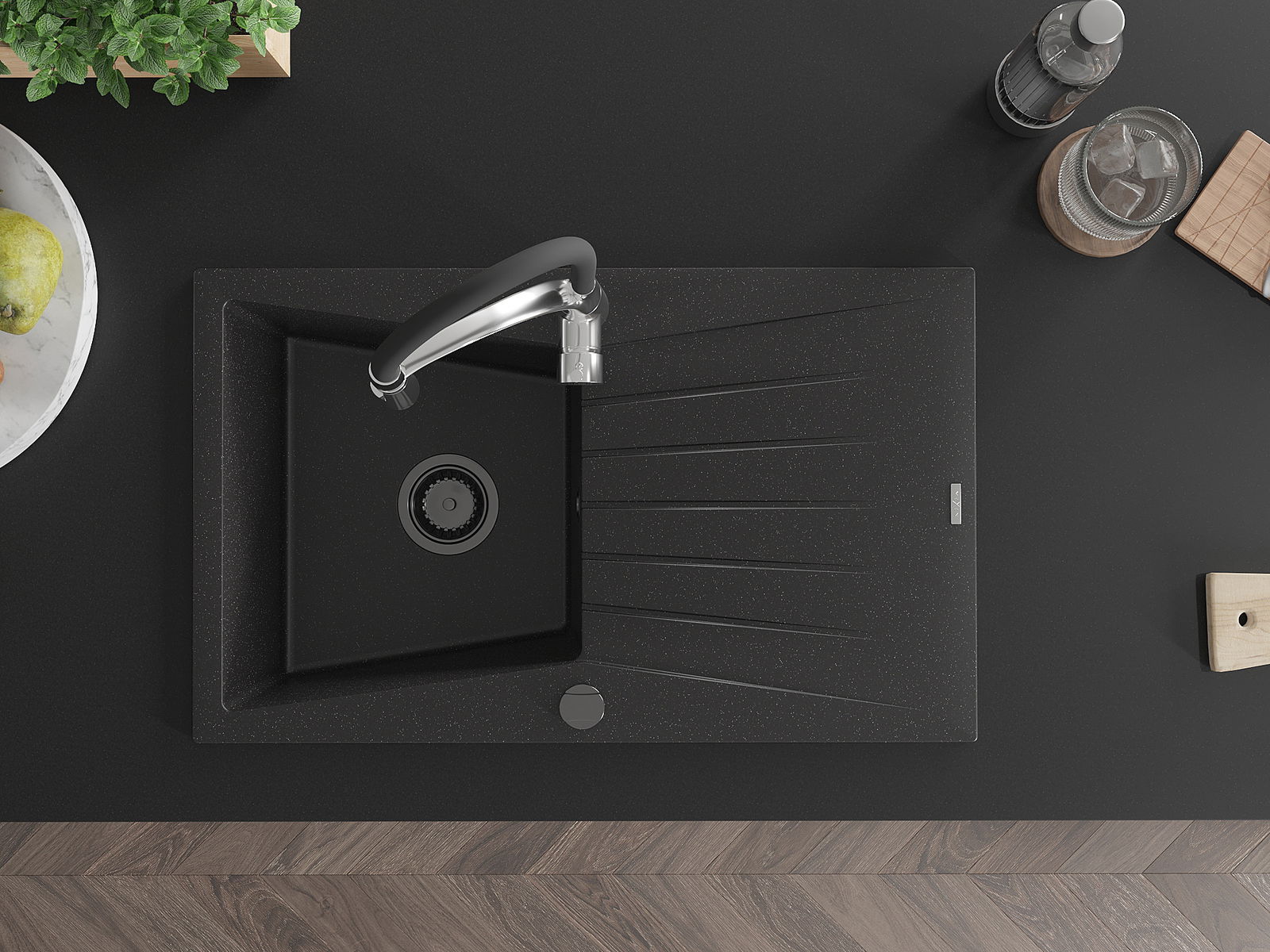 Мивката е направена от висококачествен гранит. Това е елегантно и най -вече практично допълнение към всяка кухня, независимо от нейния стил. Висококачествената и гранитна издръжливост осигуряват много години употреба.