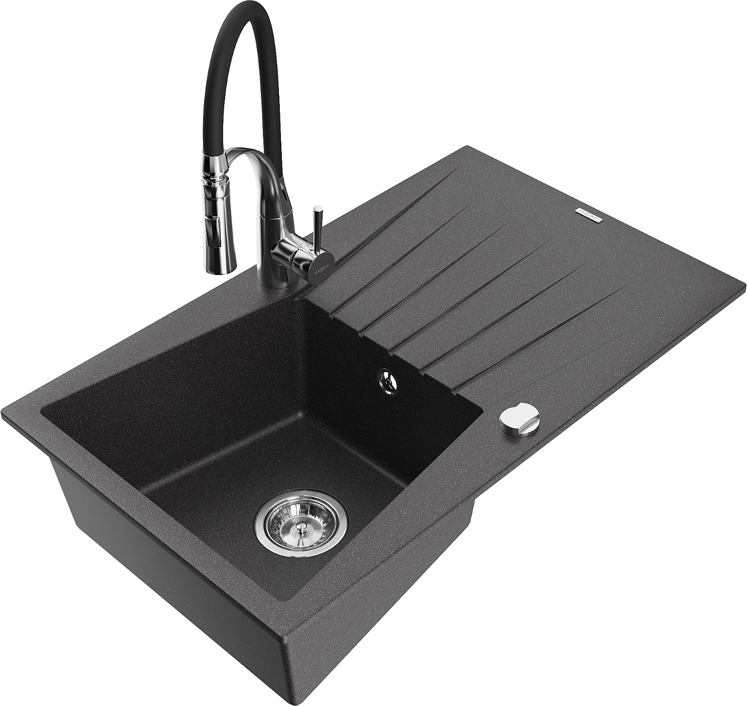 Мивката е направена от висококачествен гранит. Това е елегантно и най -вече практично допълнение към всяка кухня, независимо от нейния стил. Висококачествената и гранитна издръжливост осигуряват много години употреба.