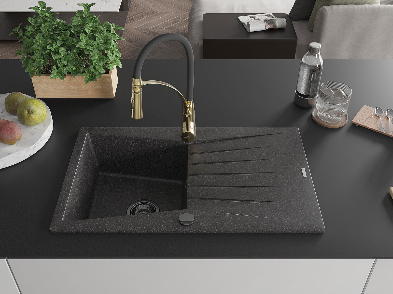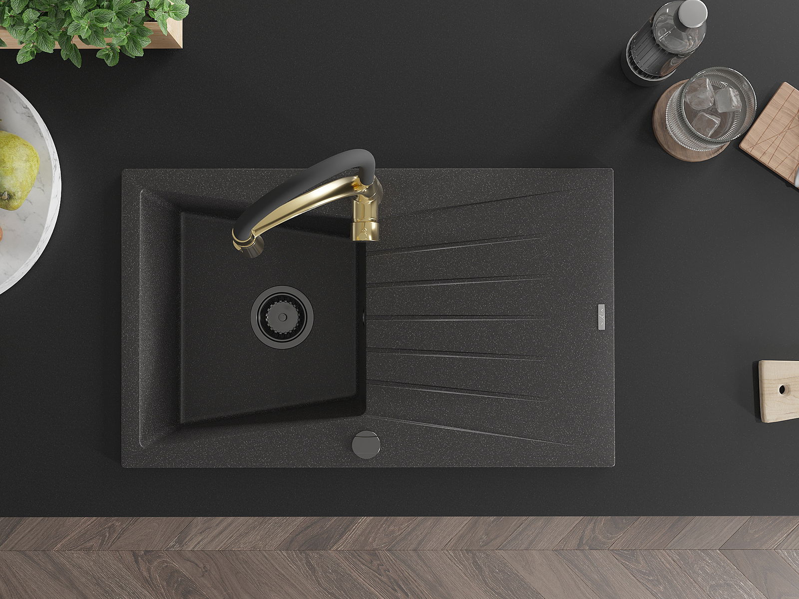 Мивката е направена от висококачествен гранит. Това е елегантно и най -вече практично допълнение към всяка кухня, независимо от нейния стил. Висококачествената и гранитна издръжливост осигуряват много години употреба.