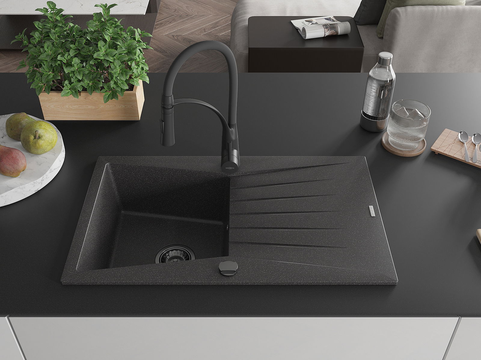 Мивката е направена от висококачествен гранит. Това е елегантно и най -вече практично допълнение към всяка кухня, независимо от нейния стил. Висококачествената и гранитна издръжливост осигуряват много години употреба.
