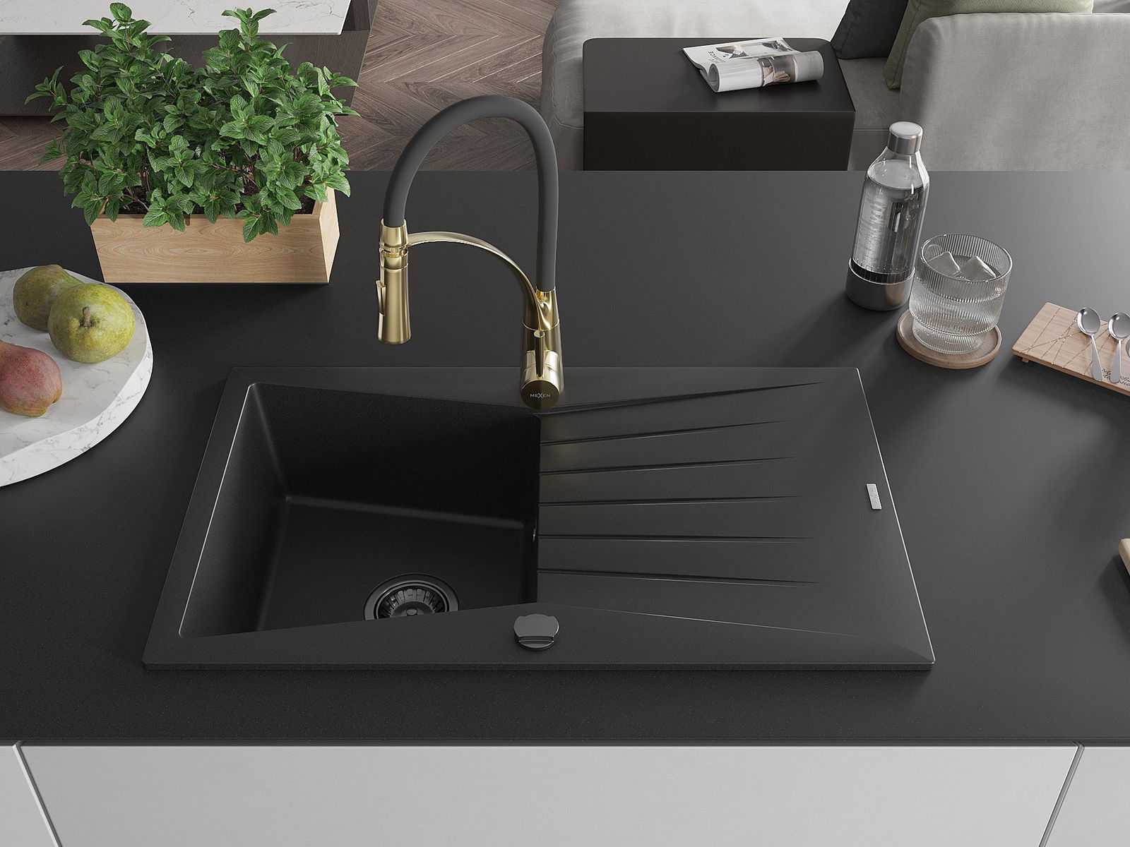 Mexen Cesar гранитна мивка с 1 отделение със сушилник и кухненски смесител
