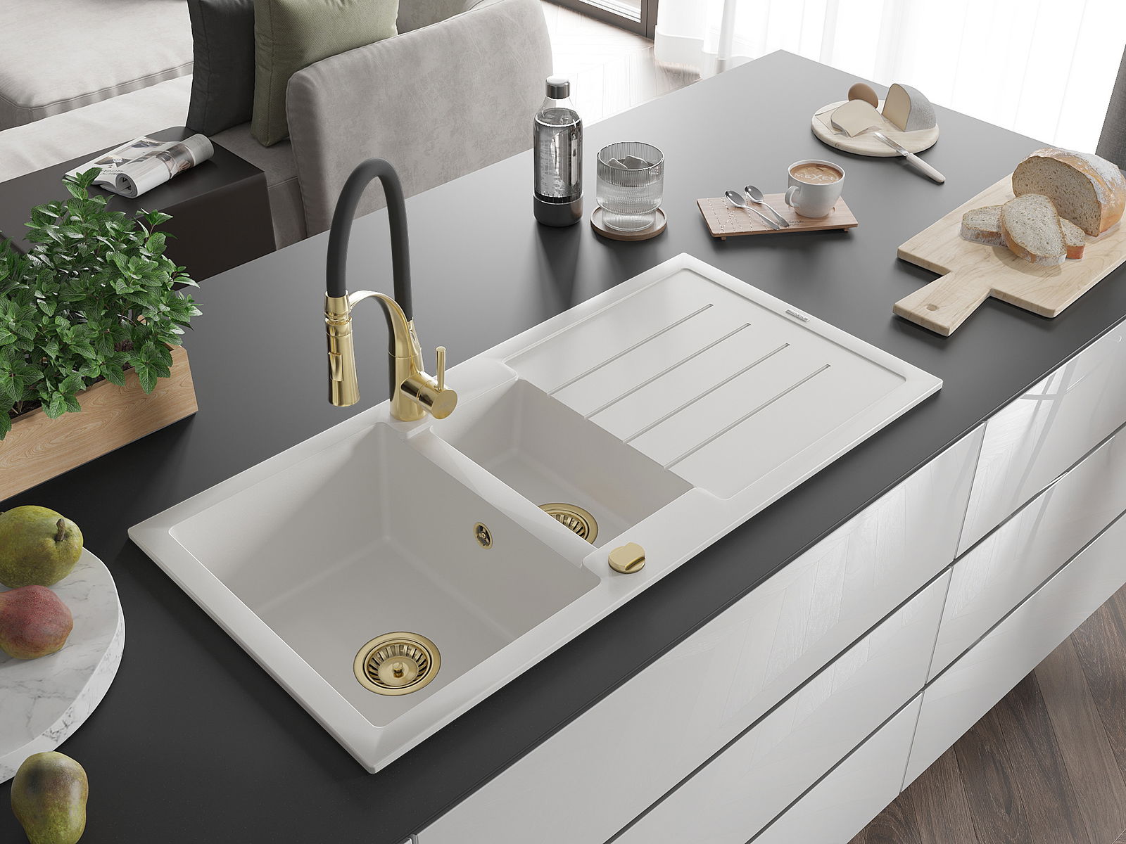 Повърхността на мивката е устойчива на петна и обезцветяване, благодарение на които е лесно да се почиства и запазва цвета си за дълго време. Естетически и практически допълващи всяка кухня.