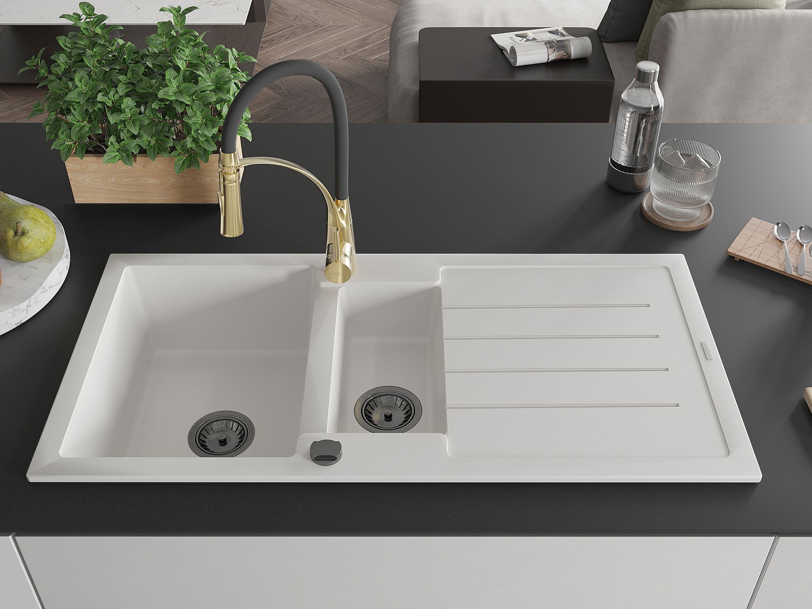 Повърхността на мивката е устойчива на петна и обезцветяване, благодарение на които е лесно да се почиства и запазва цвета си за дълго време. Естетически и практически допълващи всяка кухня.