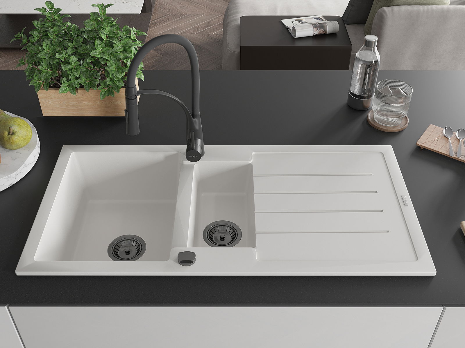 Повърхността на мивката е устойчива на петна и обезцветяване, благодарение на които е лесно да се почиства и запазва цвета си за дълго време. Естетически и практически допълващи всяка кухня.