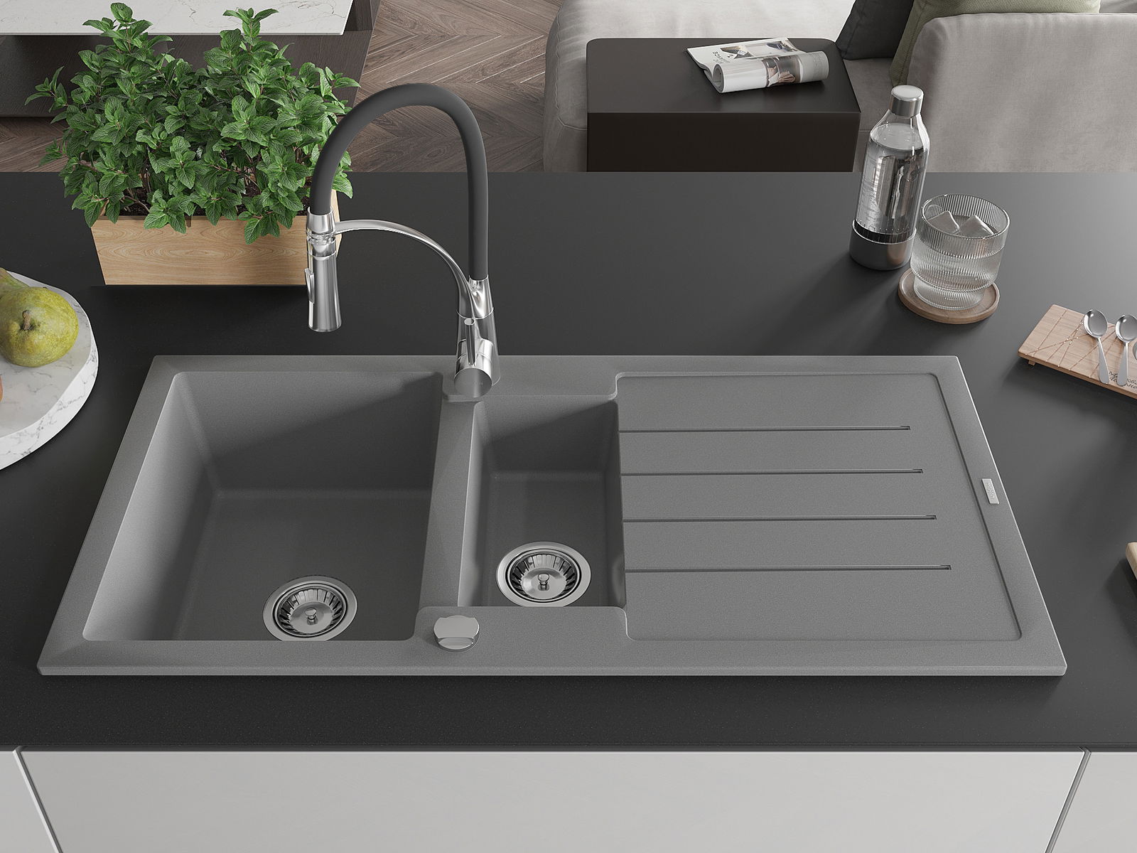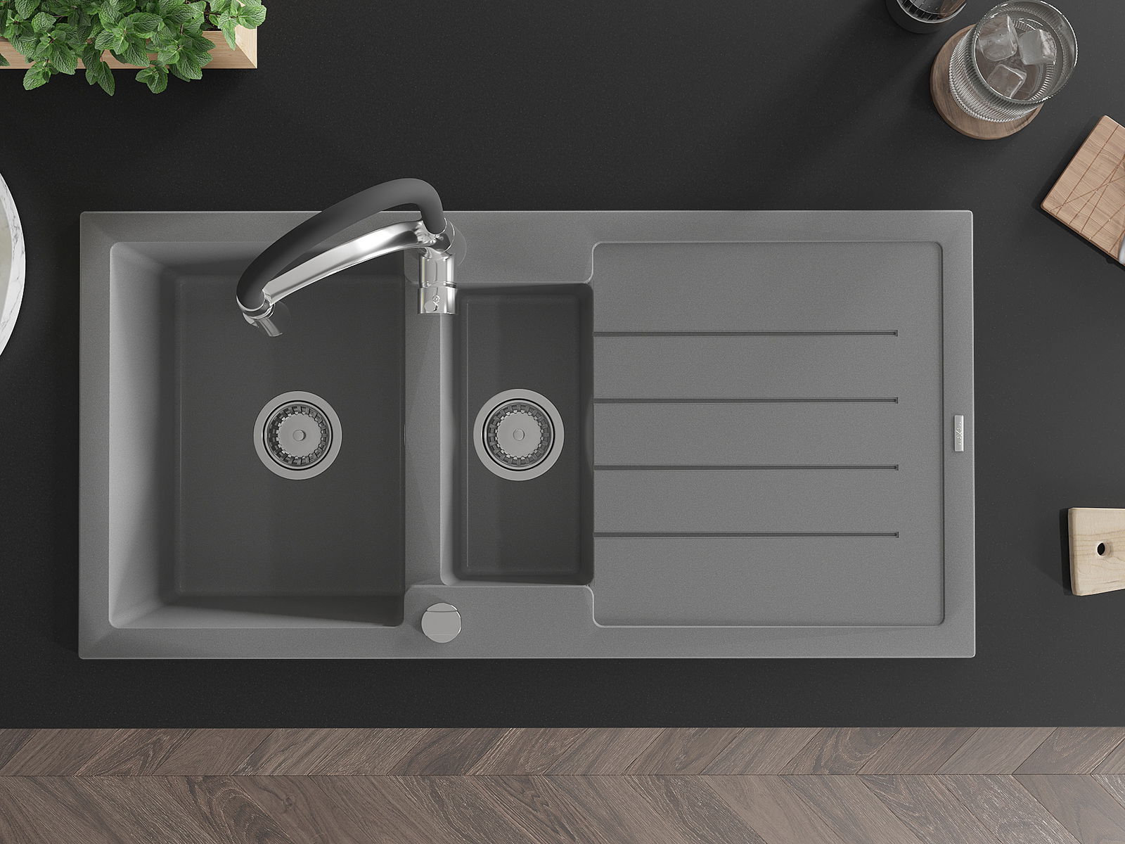 Мивката е направена от висококачествен гранит. Това е елегантно и най -вече практично допълнение към всяка кухня, независимо от нейния стил. Висококачествената и гранитна издръжливост осигуряват много години употреба.