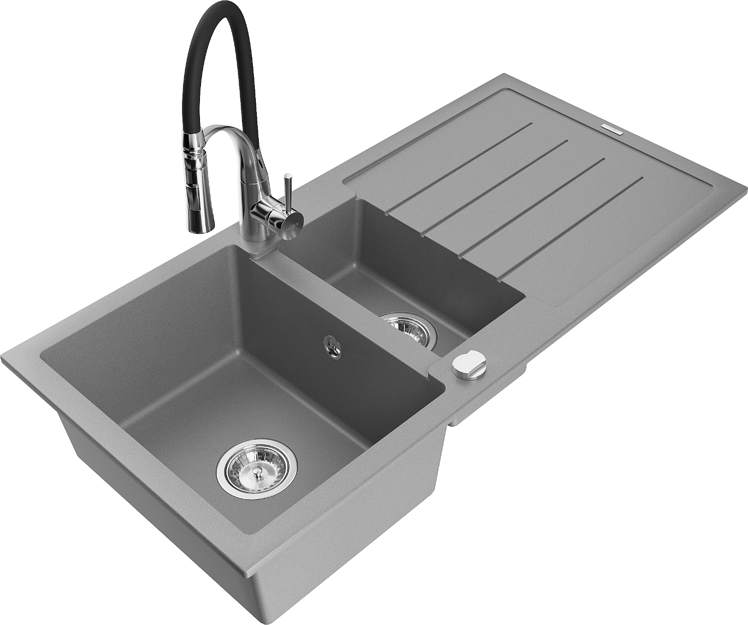 Mexen Andres гранитна мивка с 1,5 камери с отцедник и кухненски смесител Aster, сив - 6515-71-73450-07