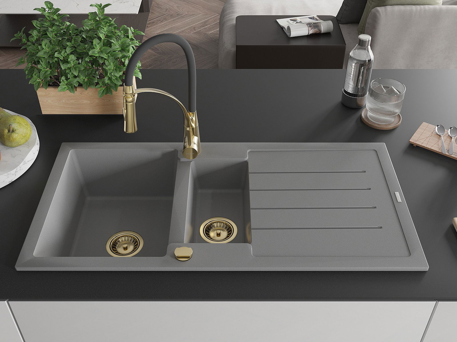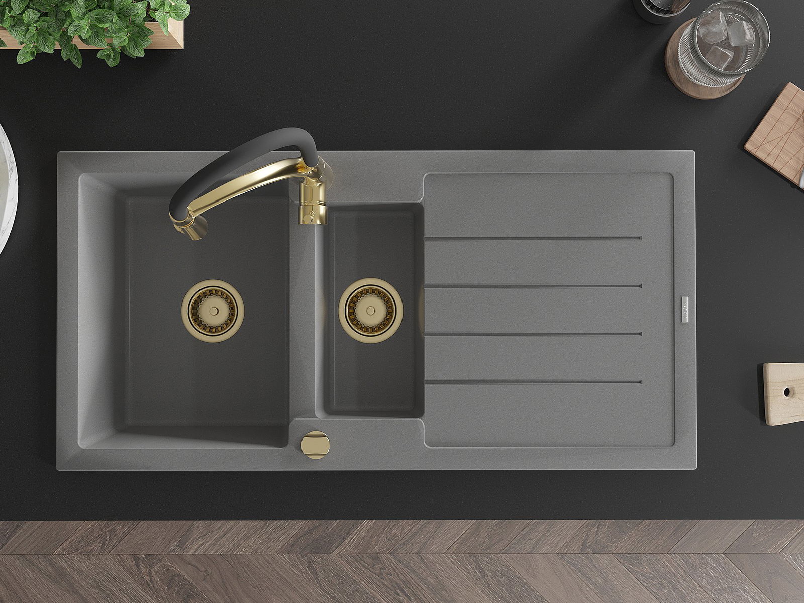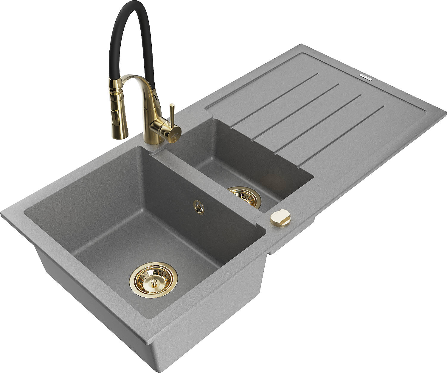 Mexen Andres гранитна мивка с 1,5 камери с отцедник и кухненски смесител Aster,