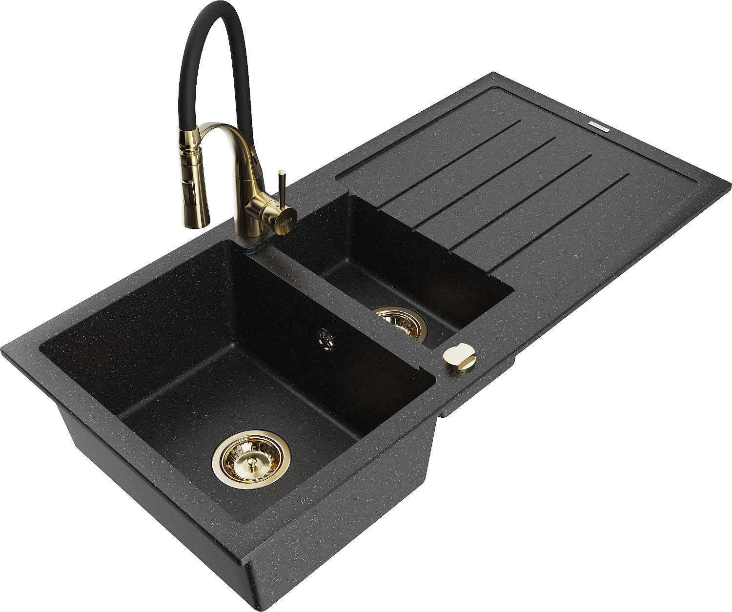 Мивка от гранит Mexen Andres с 1,5 камери и отцедник, с кухненски смесител Aster, черен/сребърен - 6515-73-73450-57-G