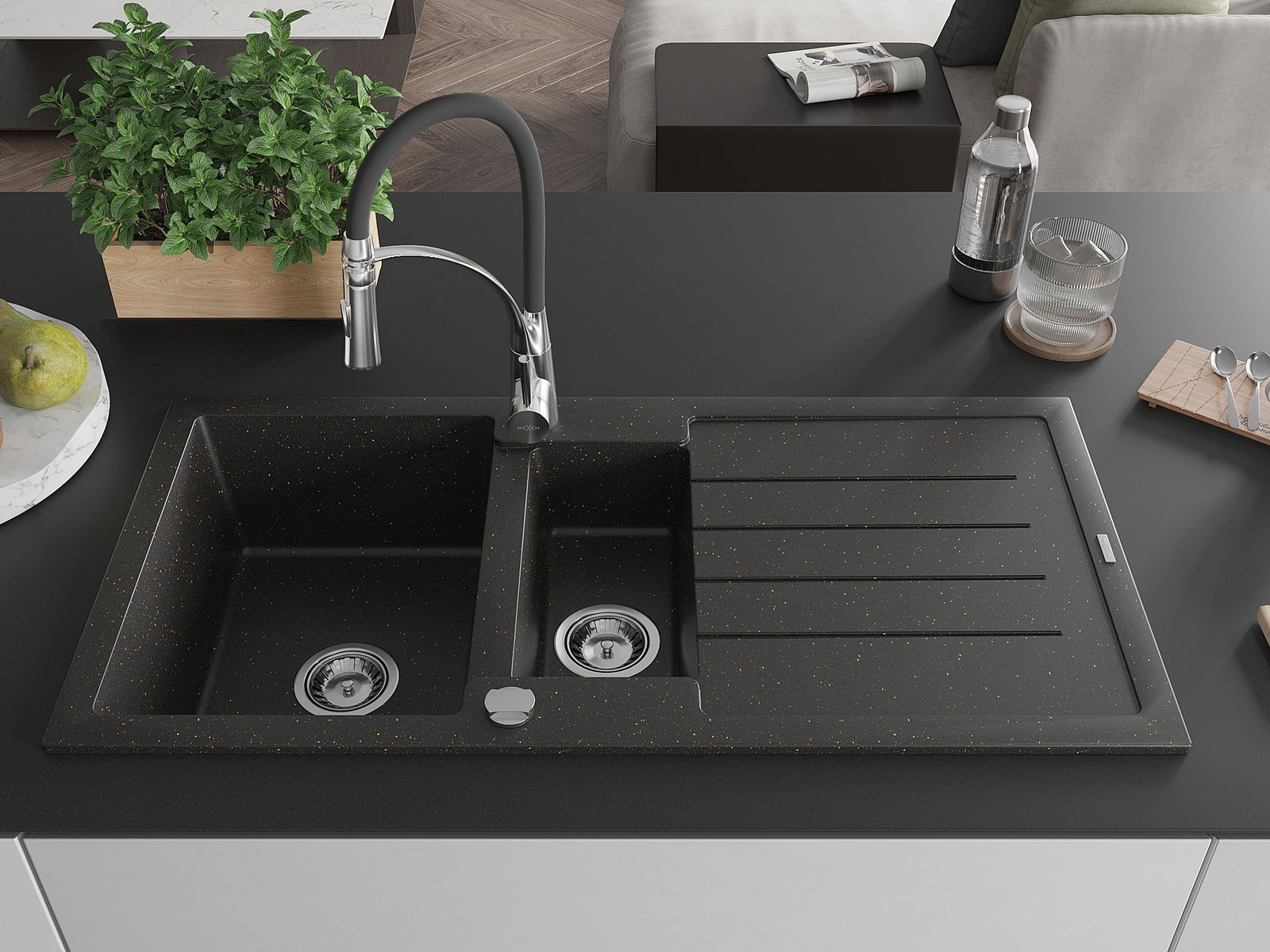 Мивката е направена от висококачествен гранит. Това е елегантно и най -вече практично допълнение към всяка кухня, независимо от нейния стил. Висококачествената и гранитна издръжливост осигуряват много години употреба.