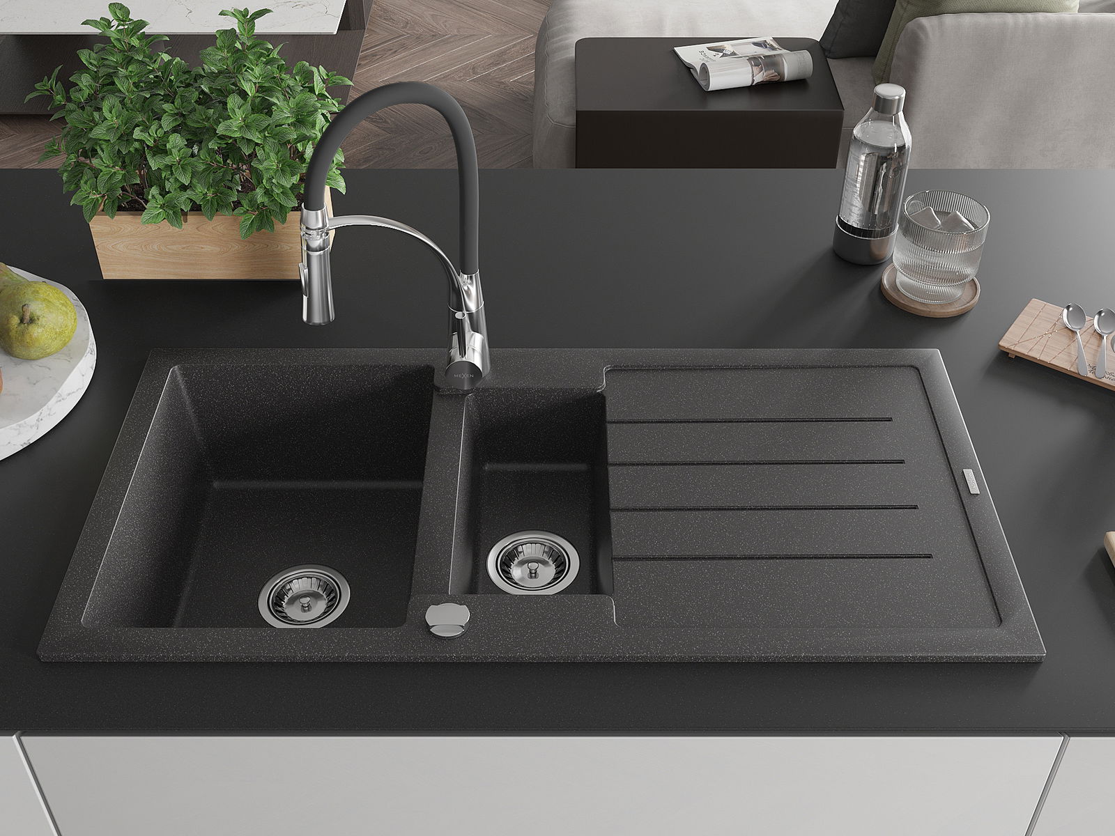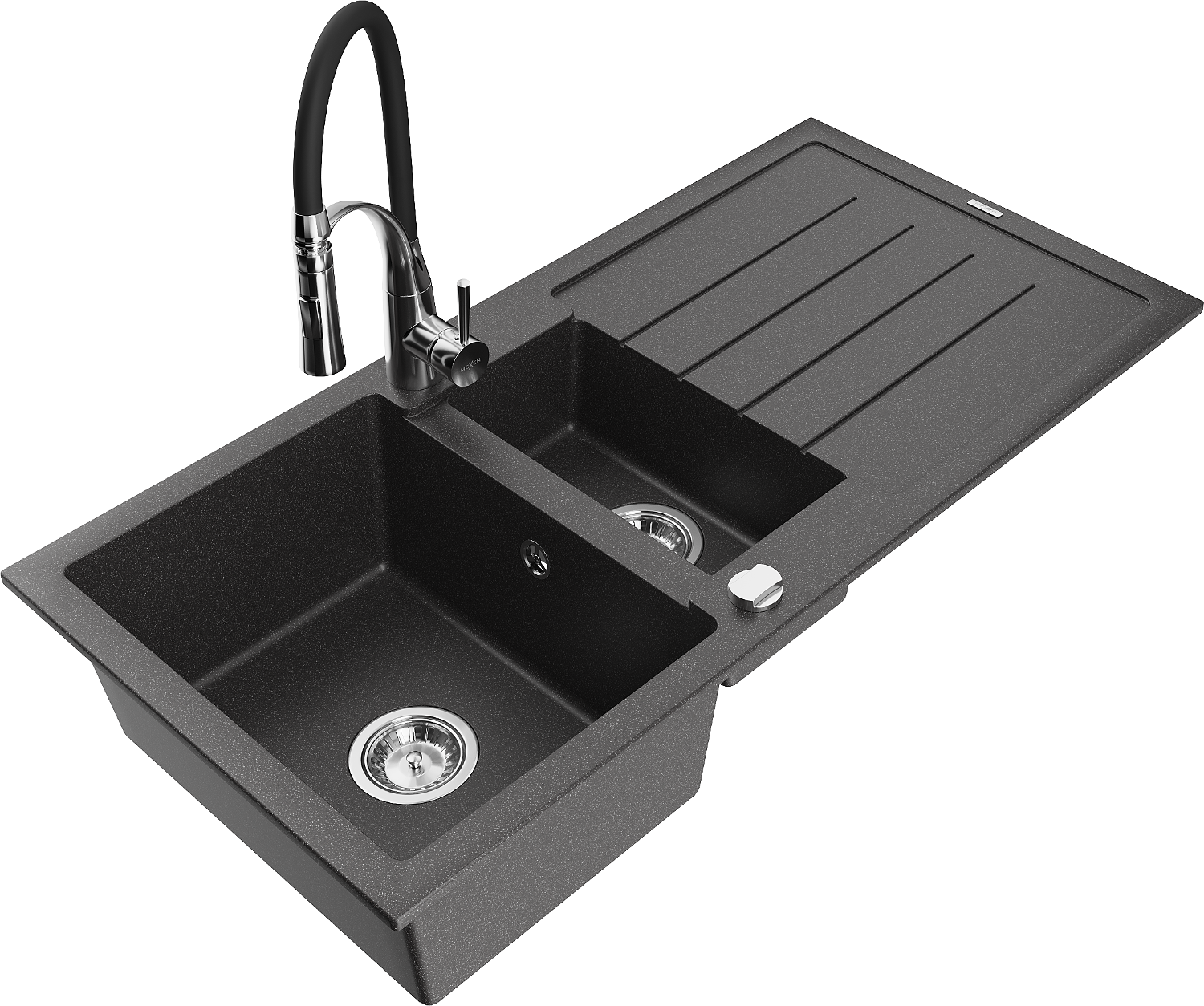 Мивката е направена от висококачествен гранит. Това е елегантно и най -вече практично допълнение към всяка кухня, независимо от нейния стил. Висококачествената и гранитна издръжливост осигуряват много години употреба.