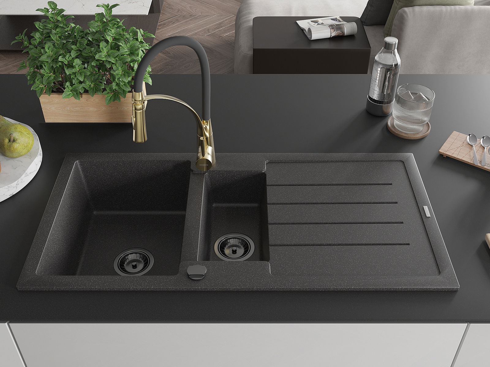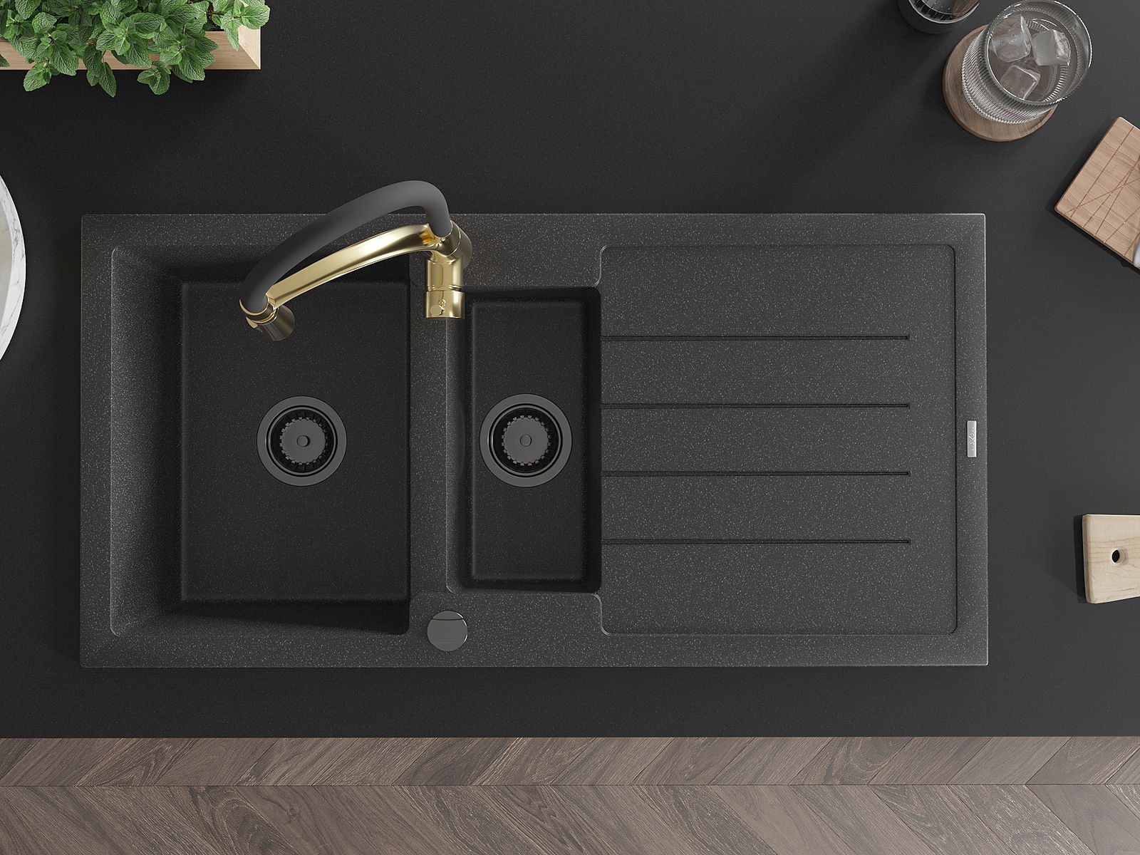 Мивката е направена от висококачествен гранит. Това е елегантно и най -вече практично допълнение към всяка кухня, независимо от нейния стил. Висококачествената и гранитна издръжливост осигуряват много години употреба.