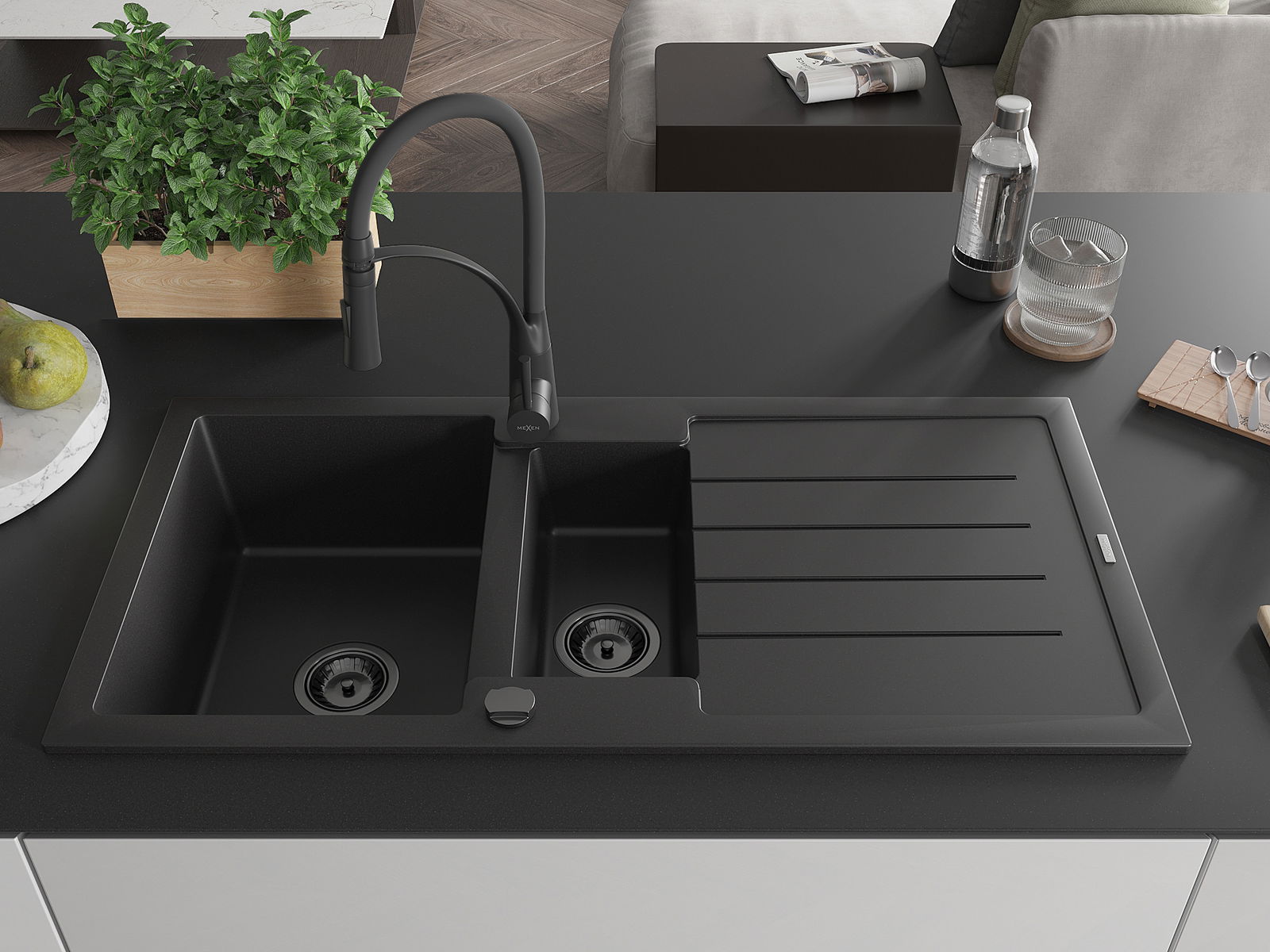 Мивката е направена от висококачествен гранит. Това е елегантно и най -вече практично допълнение към всяка кухня, независимо от нейния стил. Висококачествената и гранитна издръжливост осигуряват много години употреба.