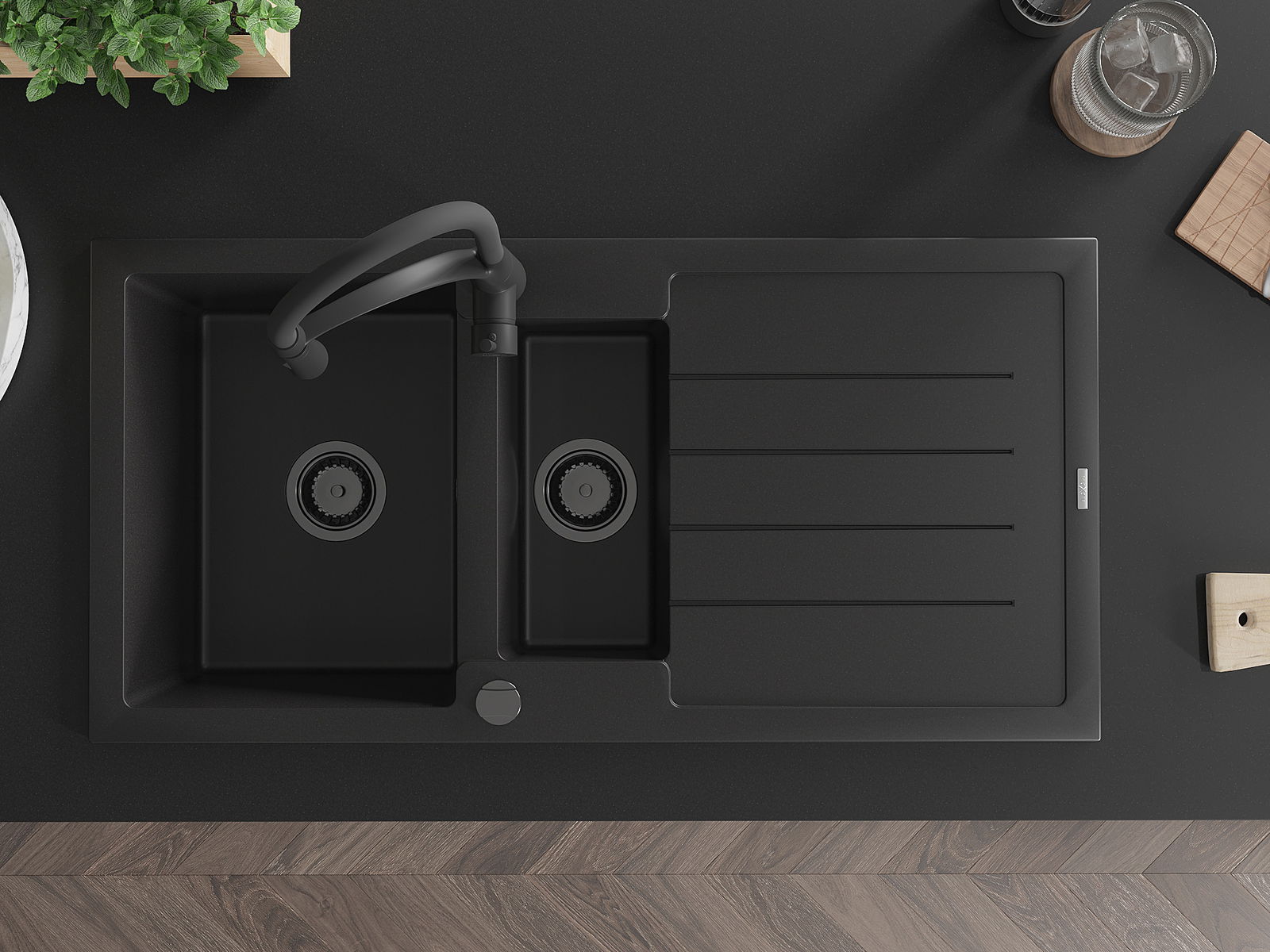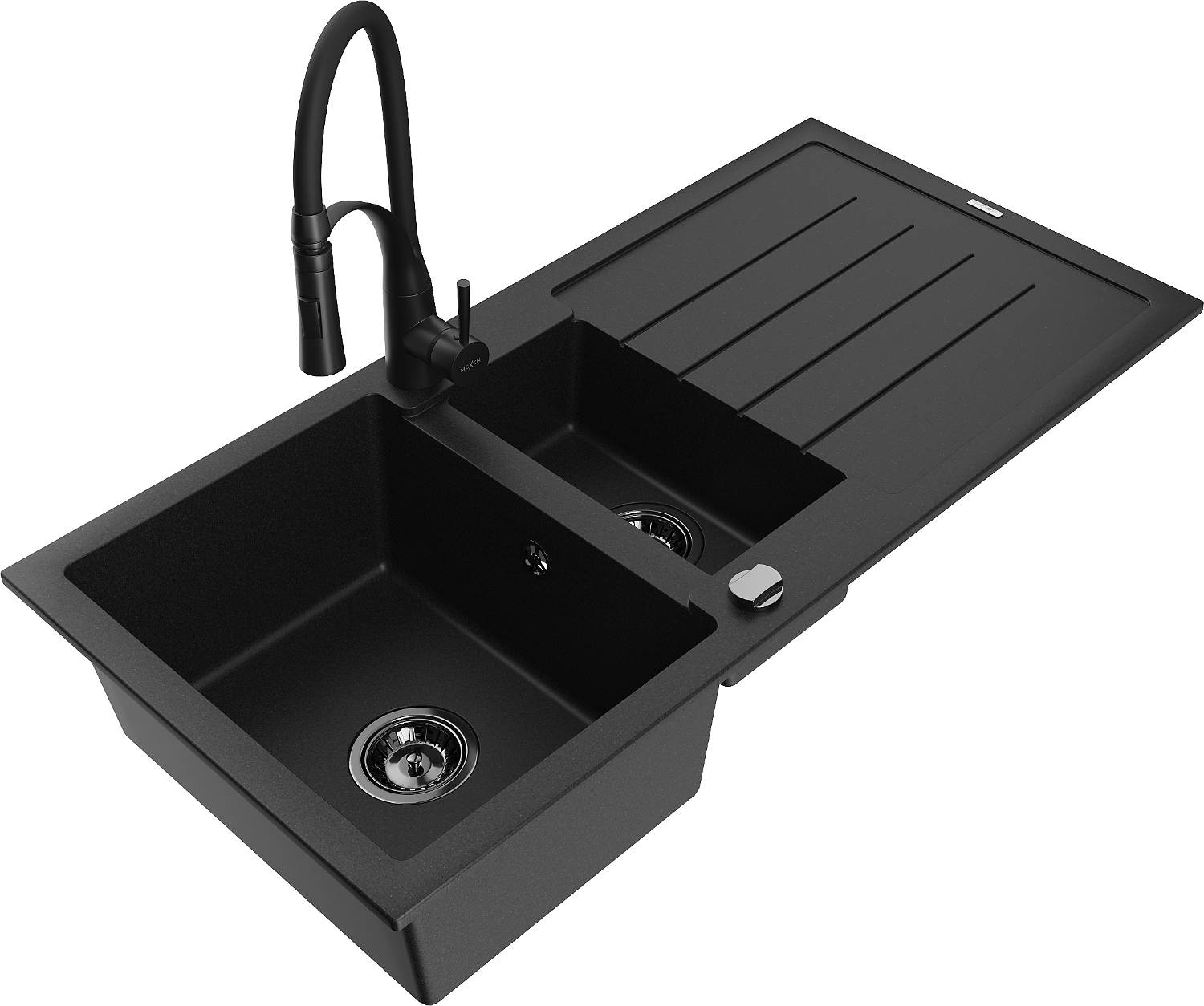 Mexen Andres гранитна мивка с 1,5 камери с отцедник и кухненски смесител Aster, черен - 6515-77-73450-70-B