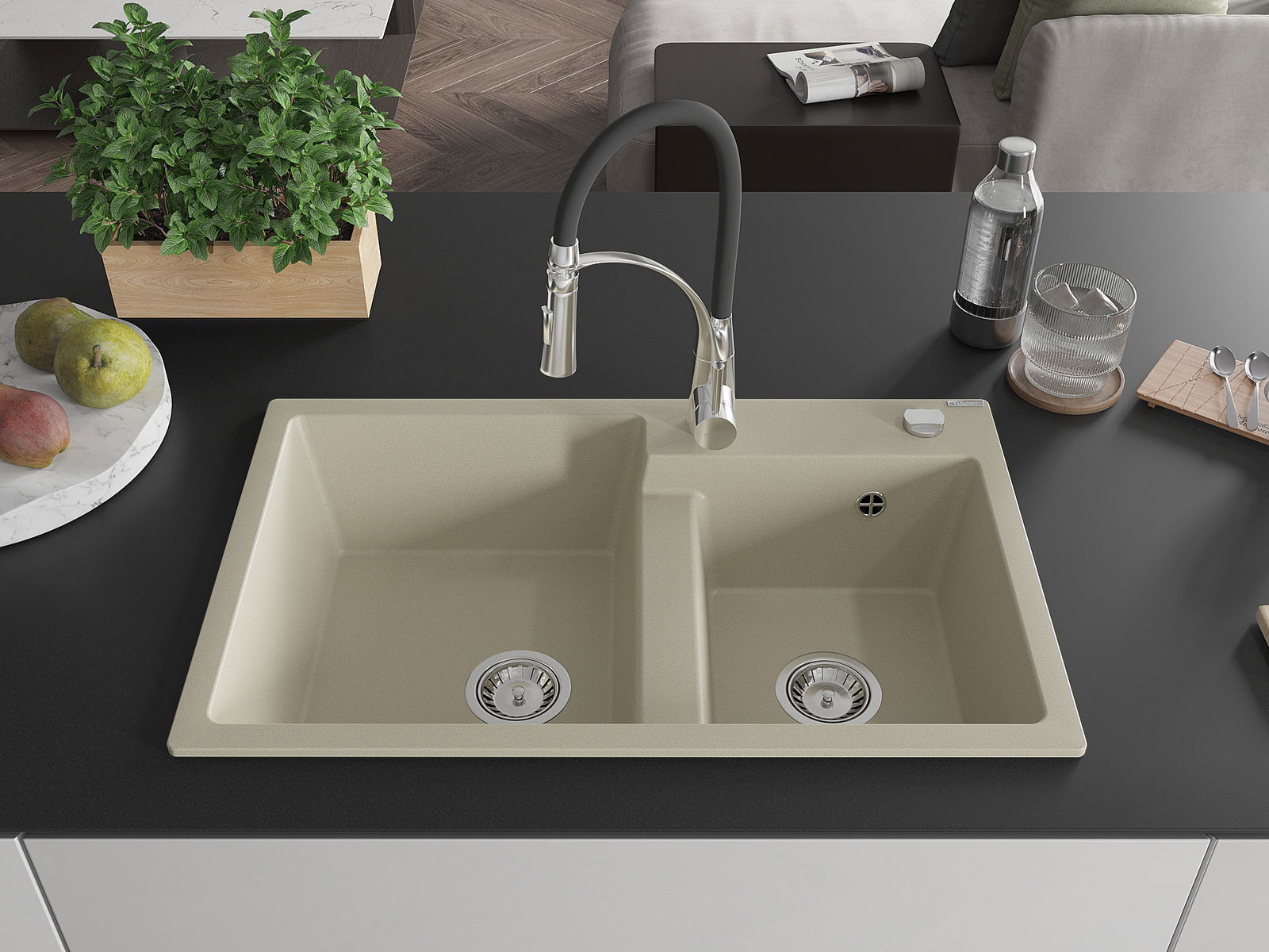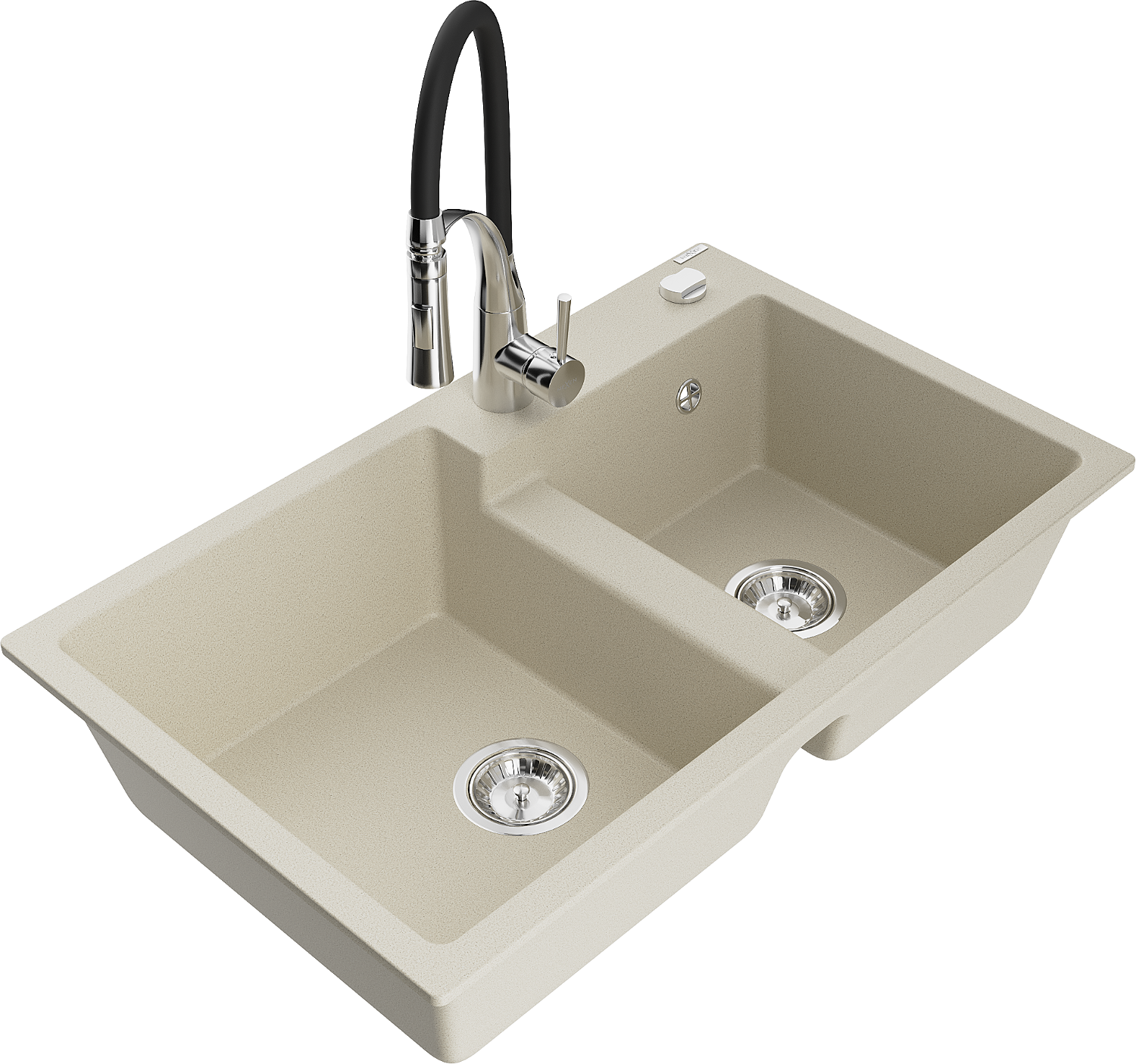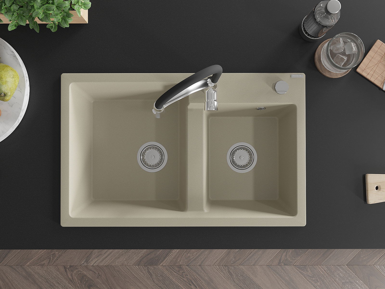Mexen Tomas двоен гранитен мивка с кухненски смесител Aster, бежов - 6516-69-73450-07