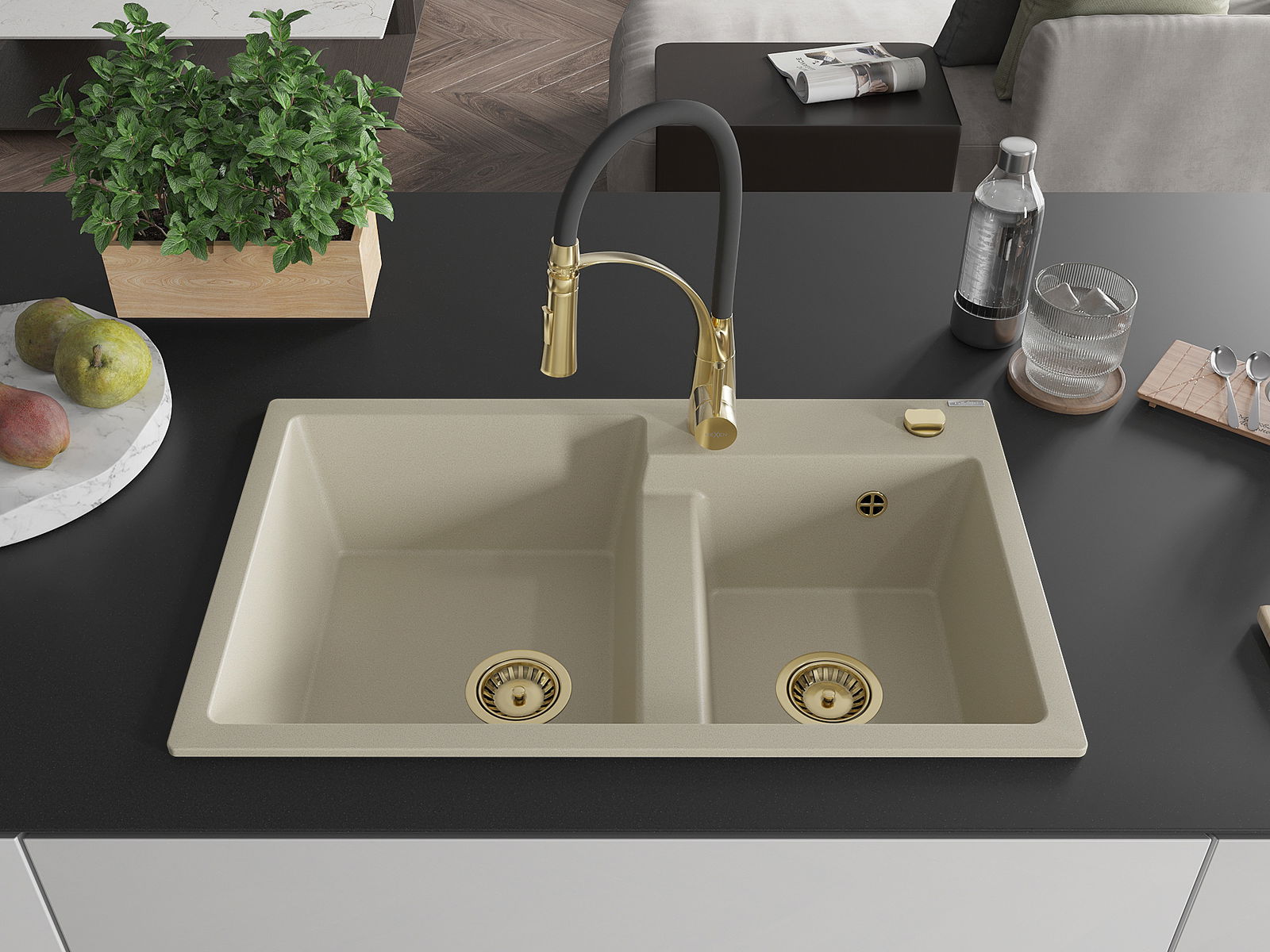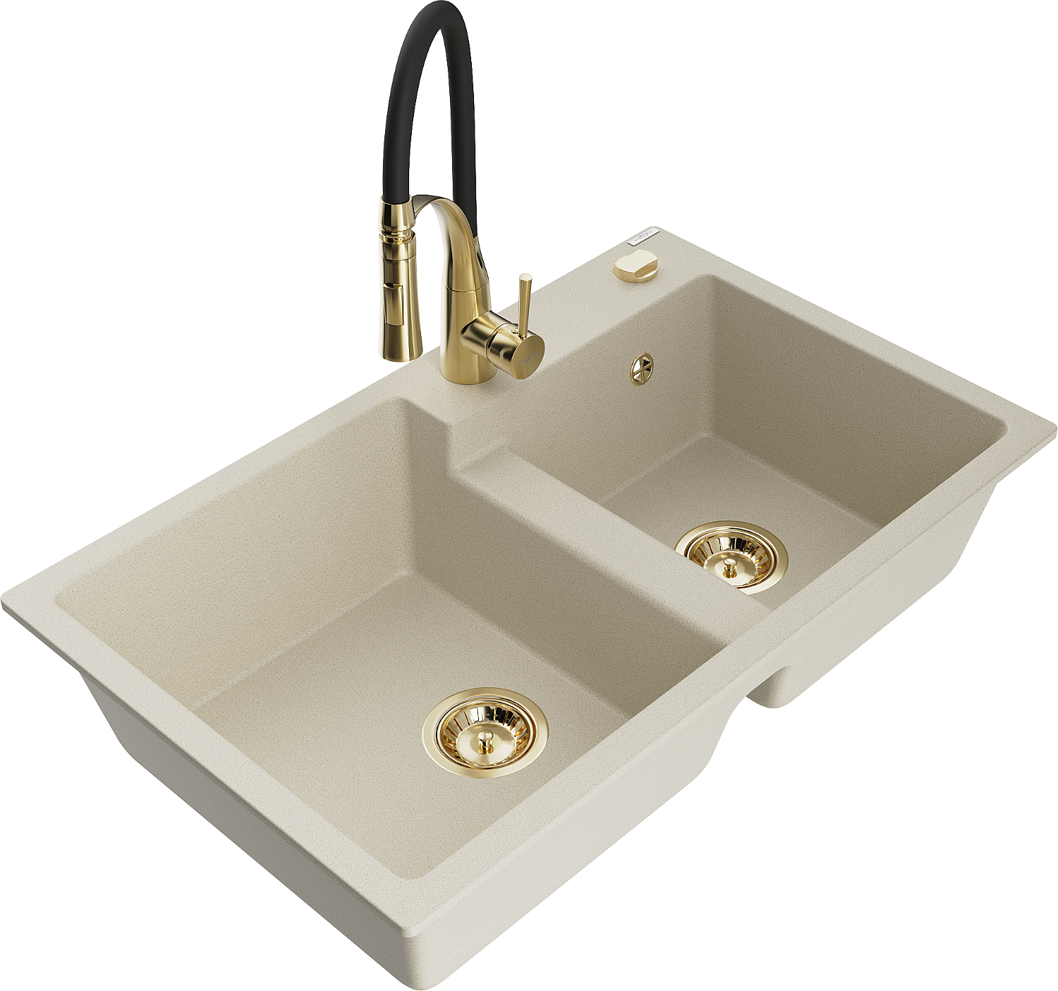 Mexen Tomas гранитна мивка с 2 камери с кухненски смесител Aster, бежов - 6516-69-73450-57-G