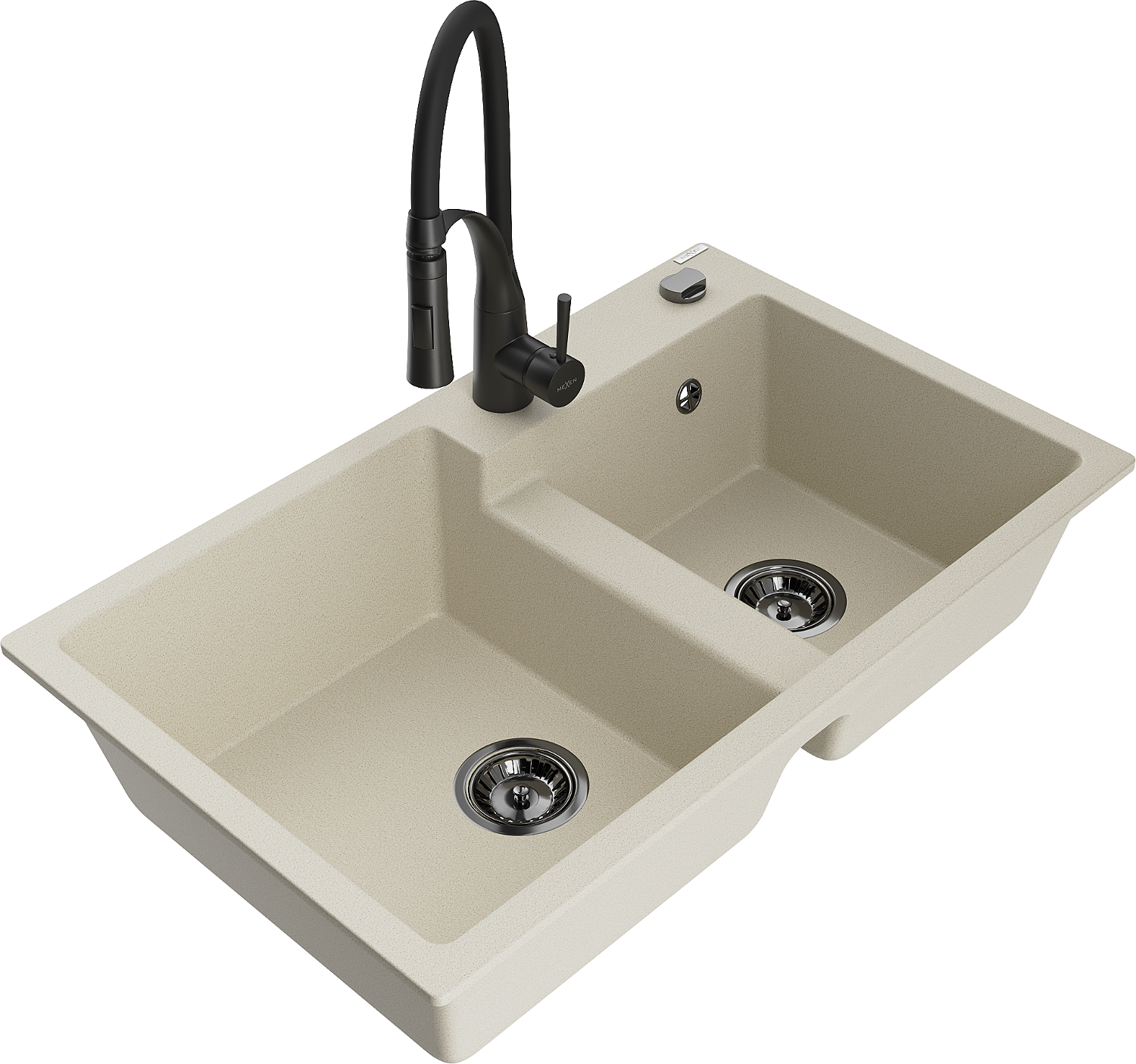 Mexen Tomas гранитна мивка с 2 отделения с кухненски смесител Aster, бежов - 6516-69-73450-70-B