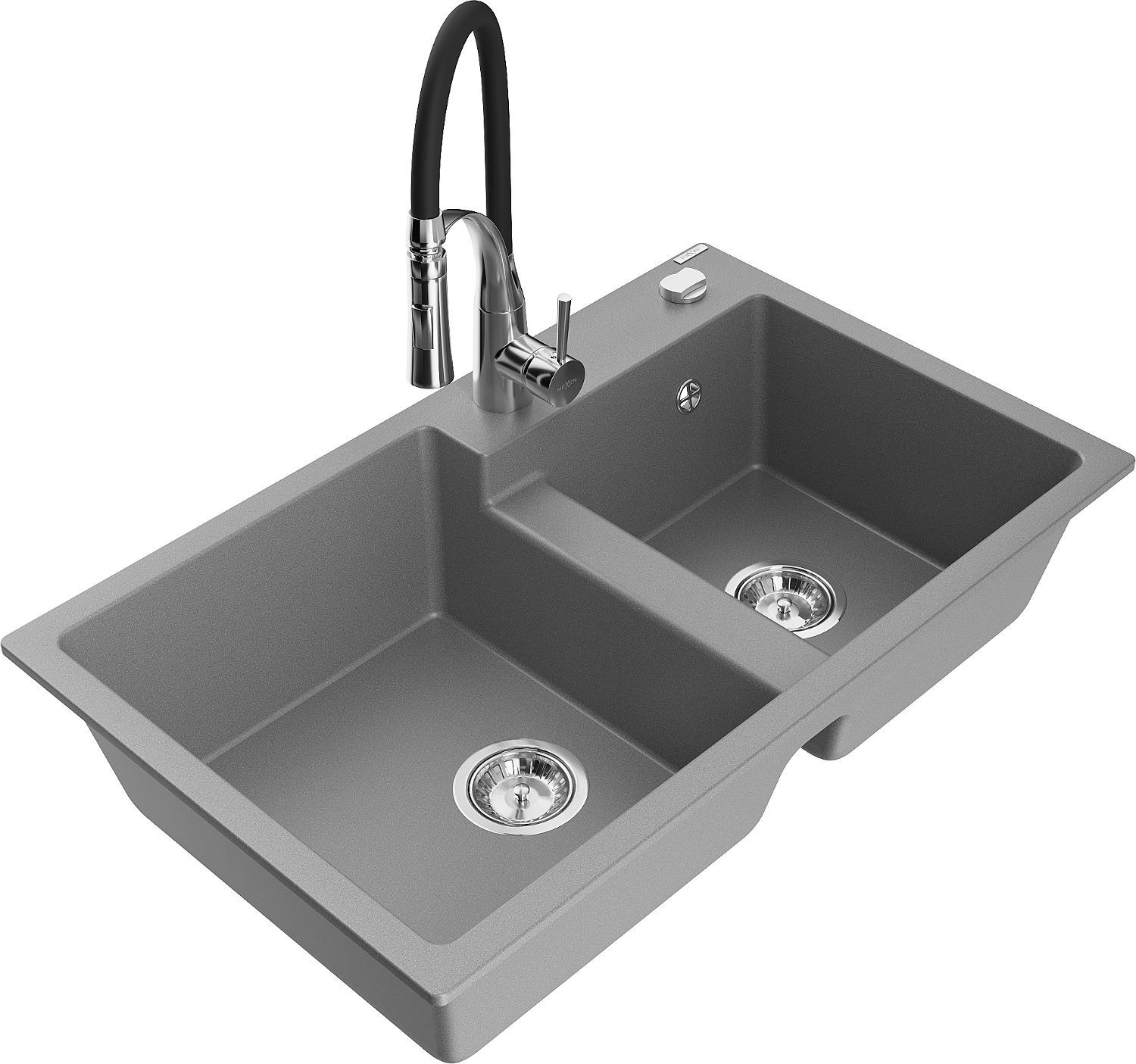 Mexen Tomas гранитна мивка с 2 камери и кухненски смесител Aster, сив - 6516-71-73450-07
