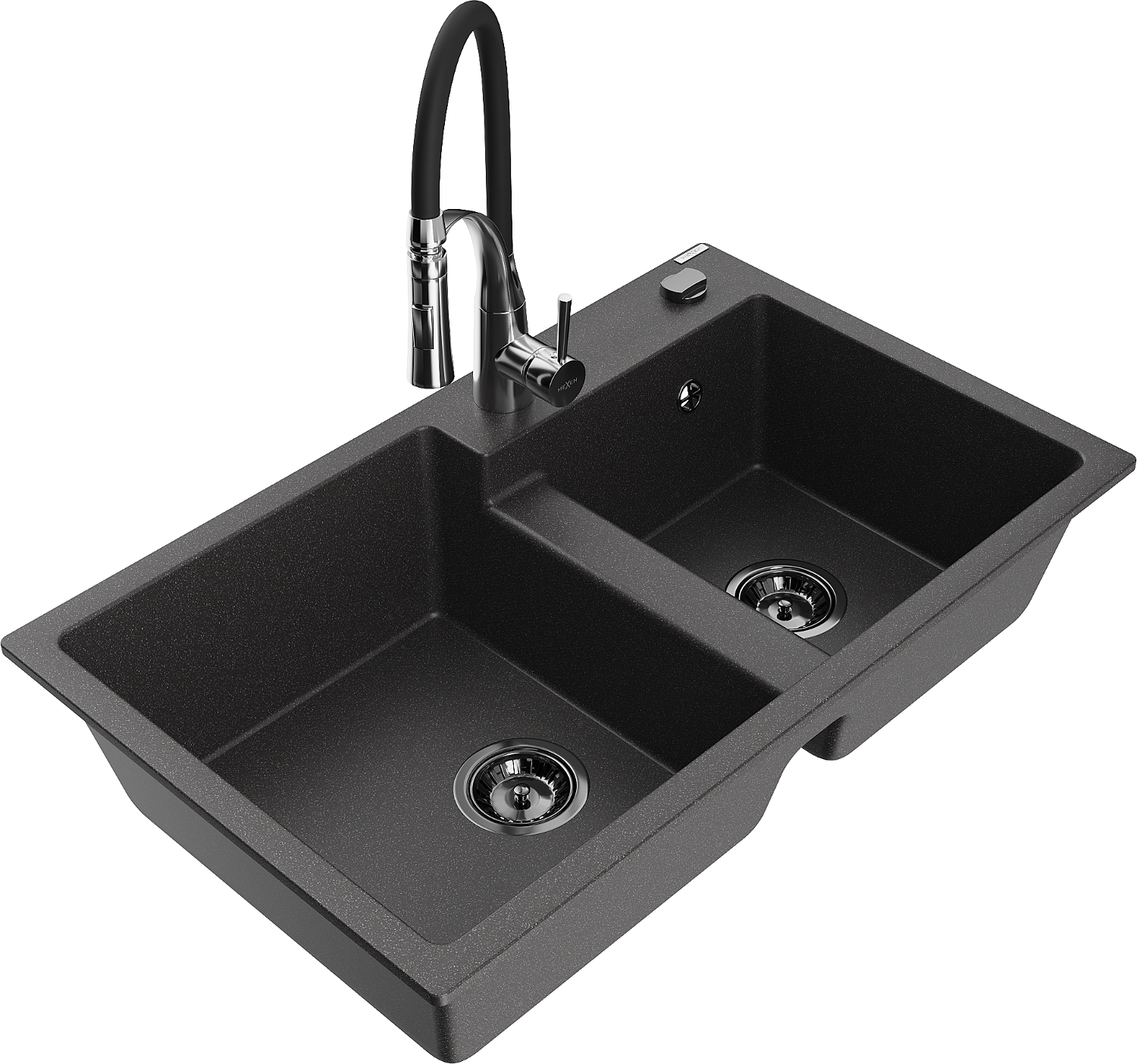 Mexen Tomas гранитна мивка с 2 камери и кухненски смесител Aster, черен с пръски - 6516-76-73450-07-B