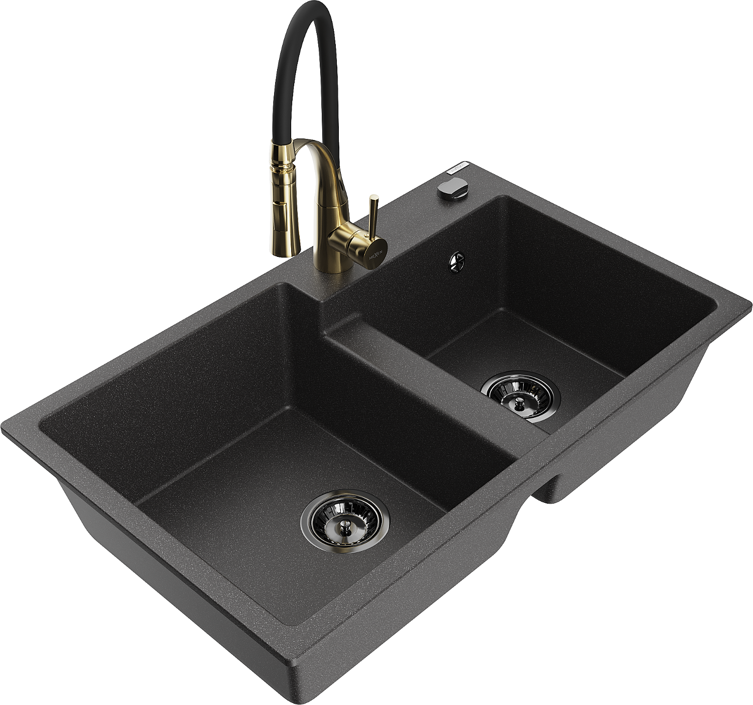 Мивка Mexen Tomas от гранит с 2 камери и кухненски смесител Aster, черна на петна - 6516-76-73450-57-B