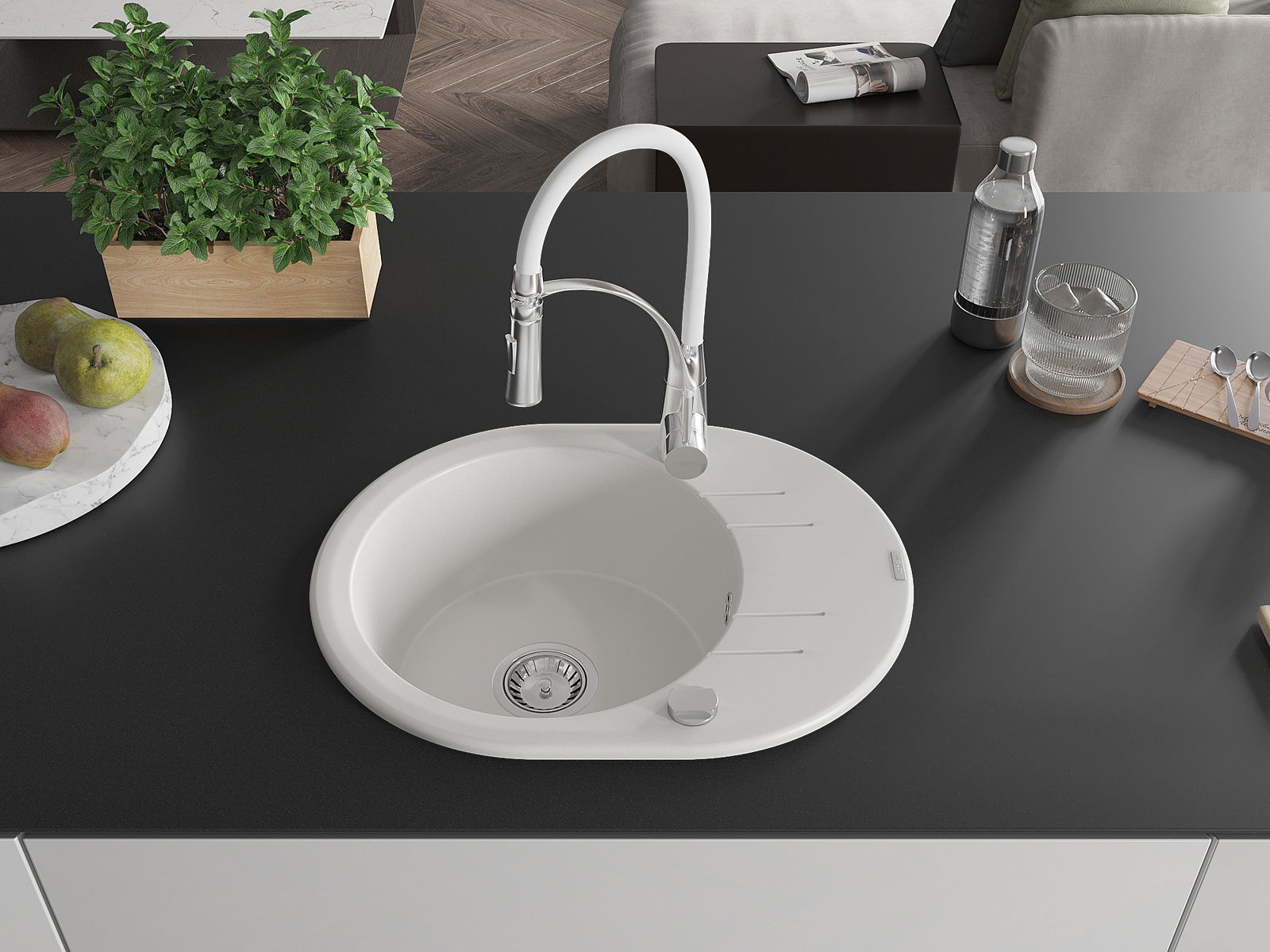 Повърхността на мивката е устойчива на петна и обезцветяване, благодарение на които е лесно да се почиства и запазва цвета си за дълго време. Естетически и практически допълващи всяка кухня.