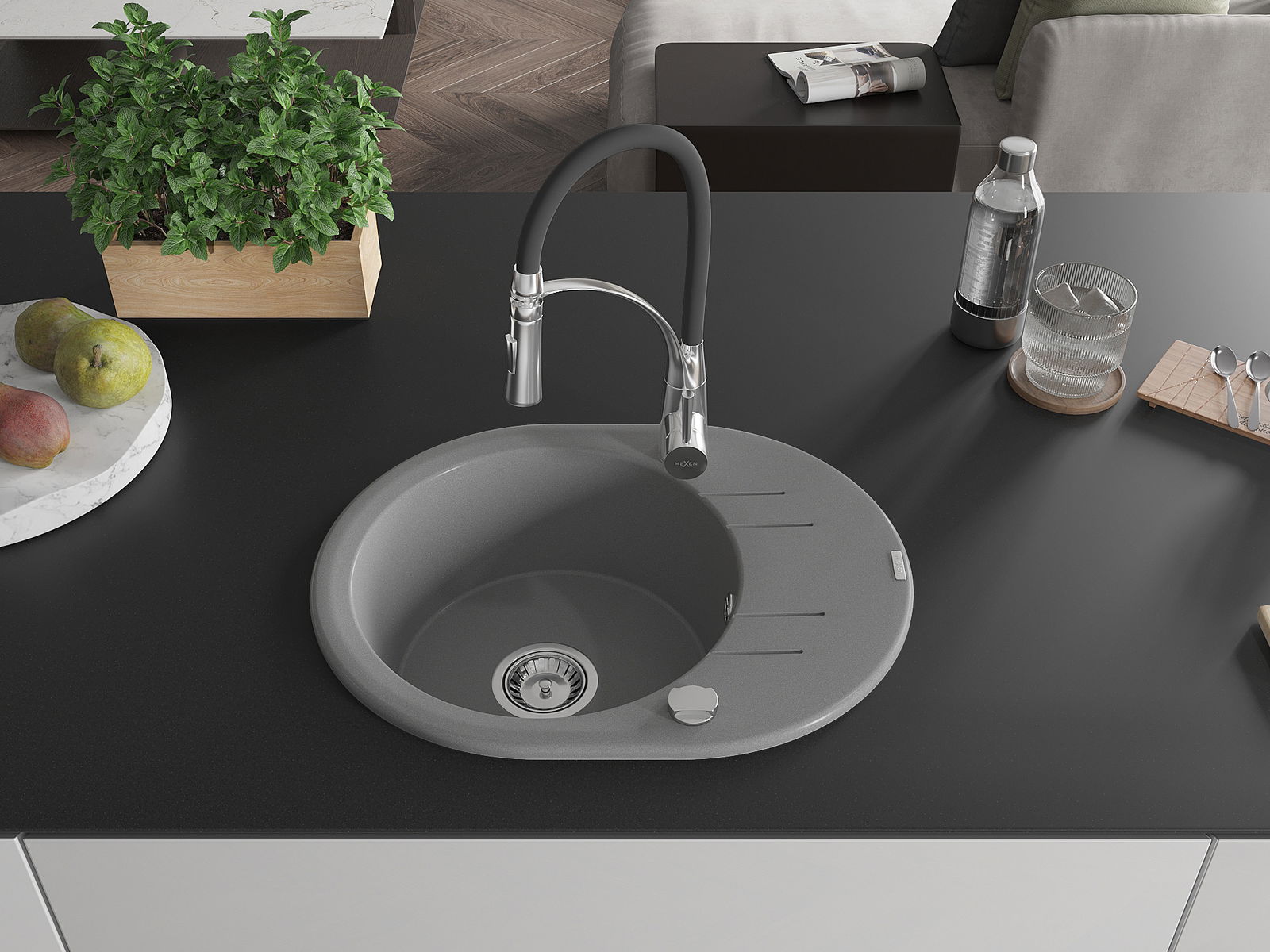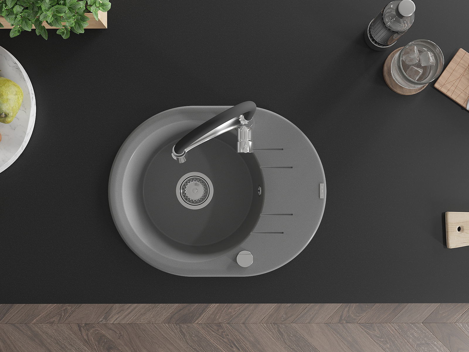 Мивката е направена от висококачествен гранит. Това е елегантно и най -вече практично допълнение към всяка кухня, независимо от нейния стил. Висококачествената и гранитна издръжливост осигуряват много години употреба.