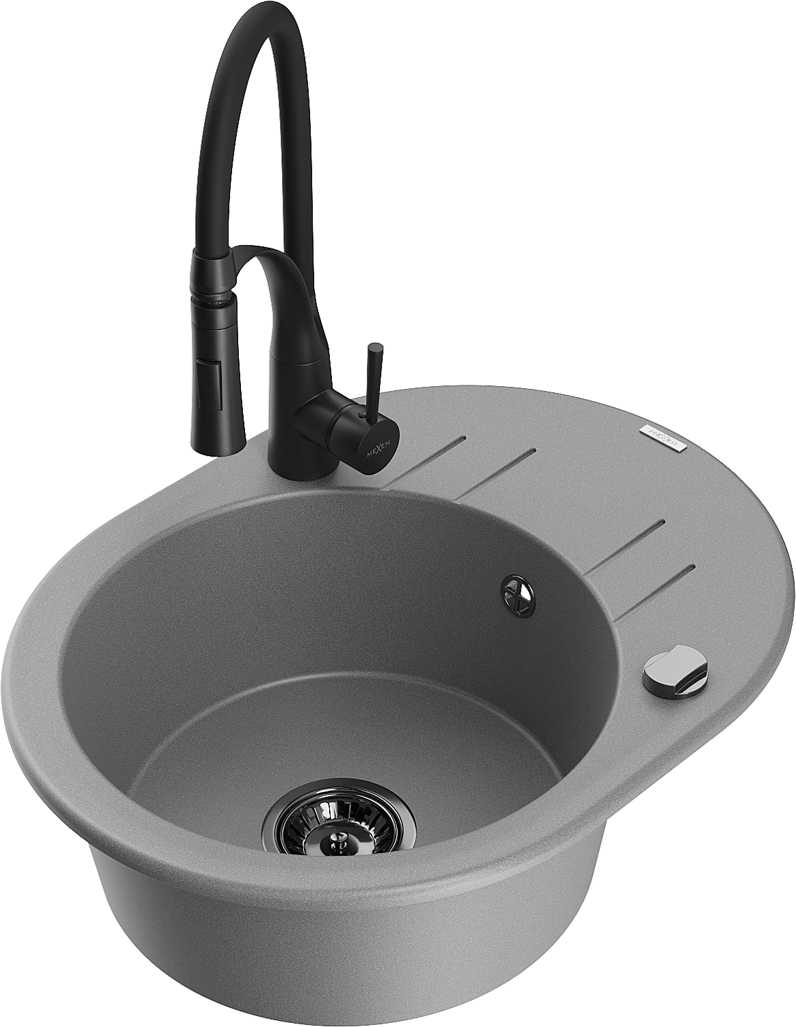 Mexen Kevin гранитна мивка с едно корито и отцедник и кухненски батериа Aster, сив - 6517-71-73450-70-B