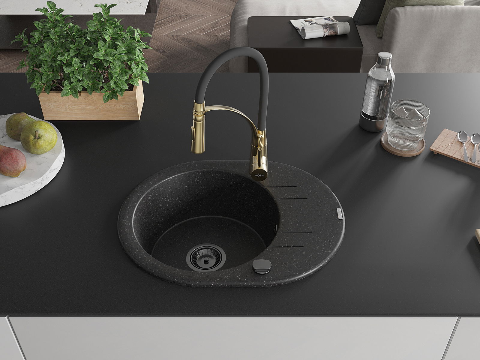 Мивката е направена от висококачествен гранит. Това е елегантно и най -вече практично допълнение към всяка кухня, независимо от нейния стил. Висококачествената и гранитна издръжливост осигуряват много години употреба.