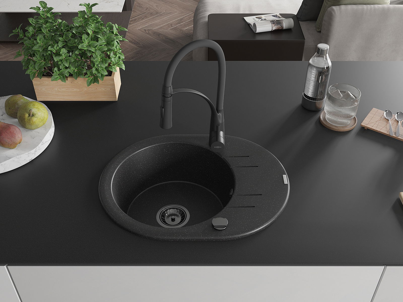 Мивката е направена от висококачествен гранит. Това е елегантно и най -вече практично допълнение към всяка кухня, независимо от нейния стил. Висококачествената и гранитна издръжливост осигуряват много години употреба.
