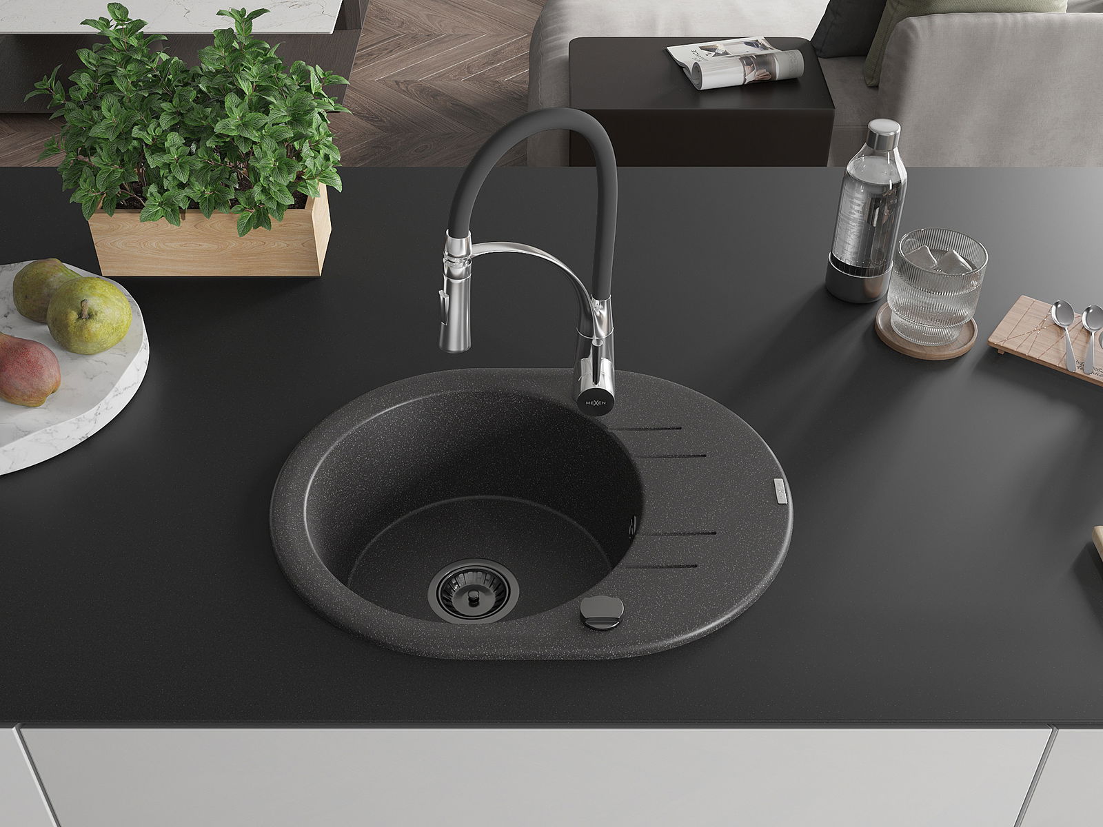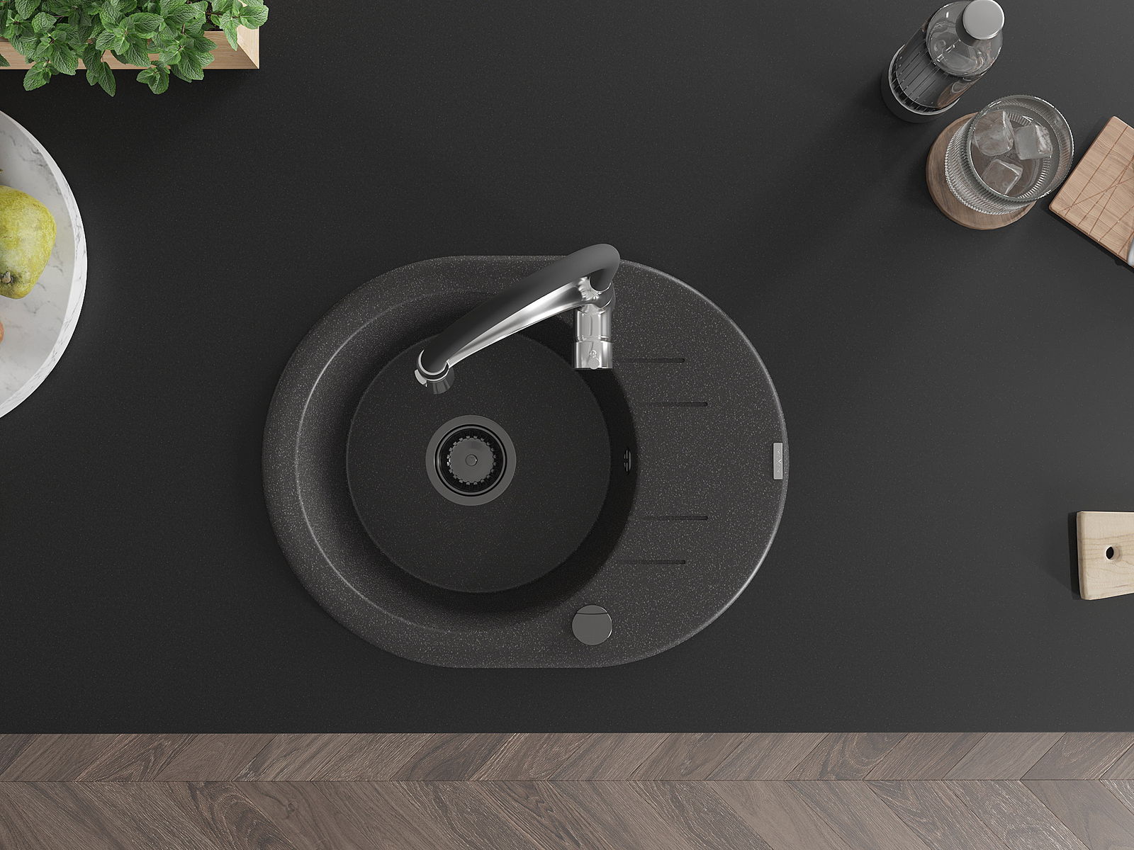 Мивката е направена от висококачествен гранит. Това е елегантно и най -вече практично допълнение към всяка кухня, независимо от нейния стил. Висококачествената и гранитна издръжливост осигуряват много години употреба.