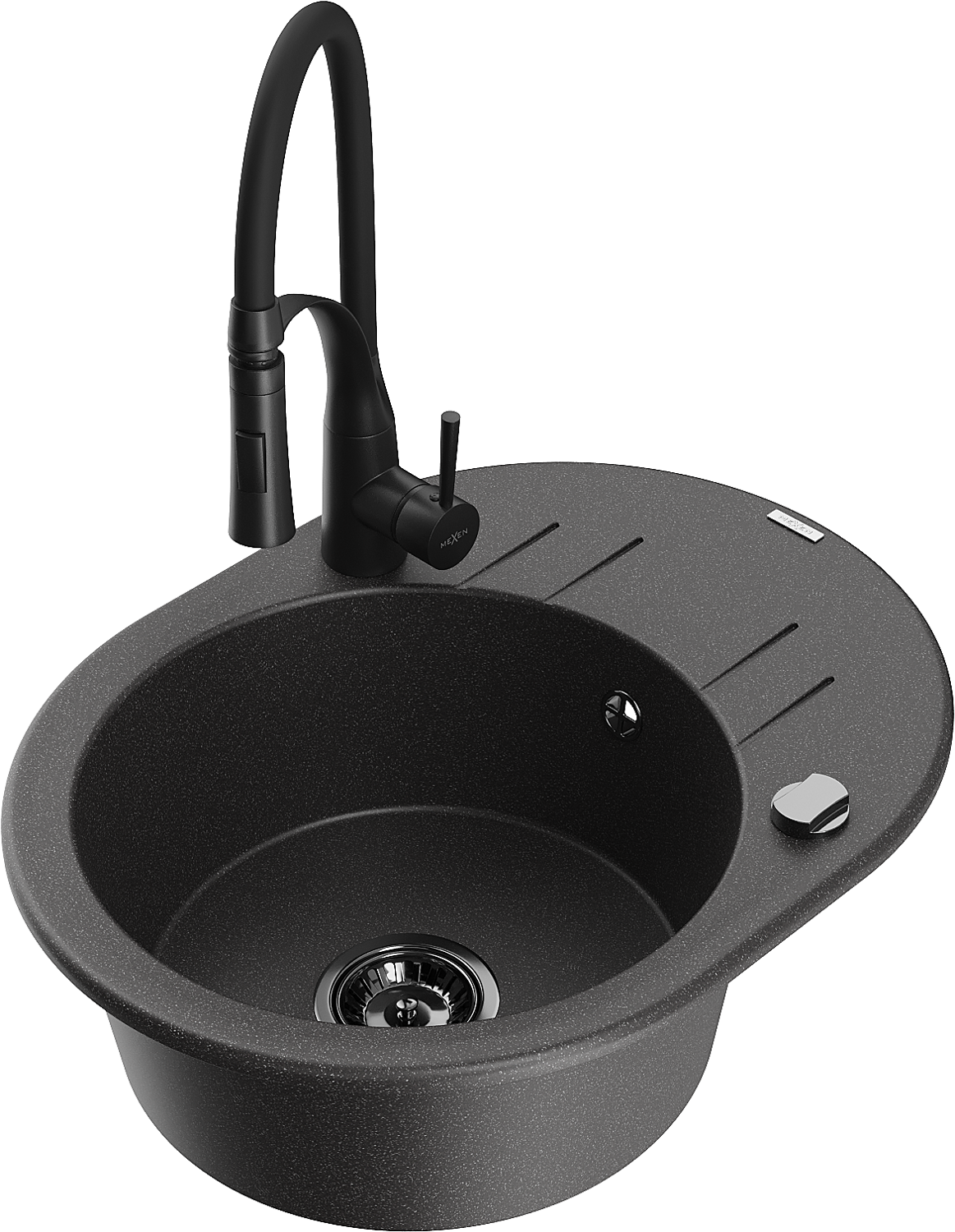 Mexen Kevin гранитна мивка с 1 корито с отцедник и кухненски смесител Aster,
