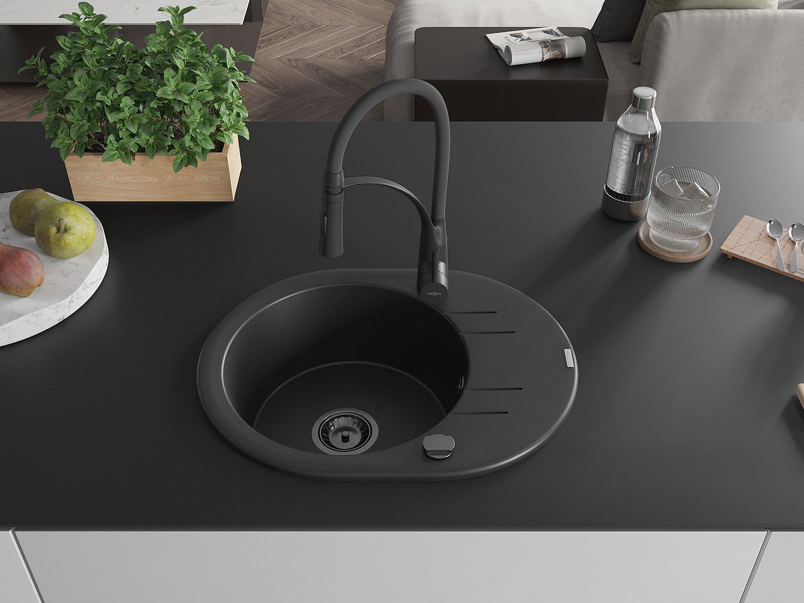 Мивката е направена от висококачествен гранит. Това е елегантно и най -вече практично допълнение към всяка кухня, независимо от нейния стил. Висококачествената и гранитна издръжливост осигуряват много години употреба.