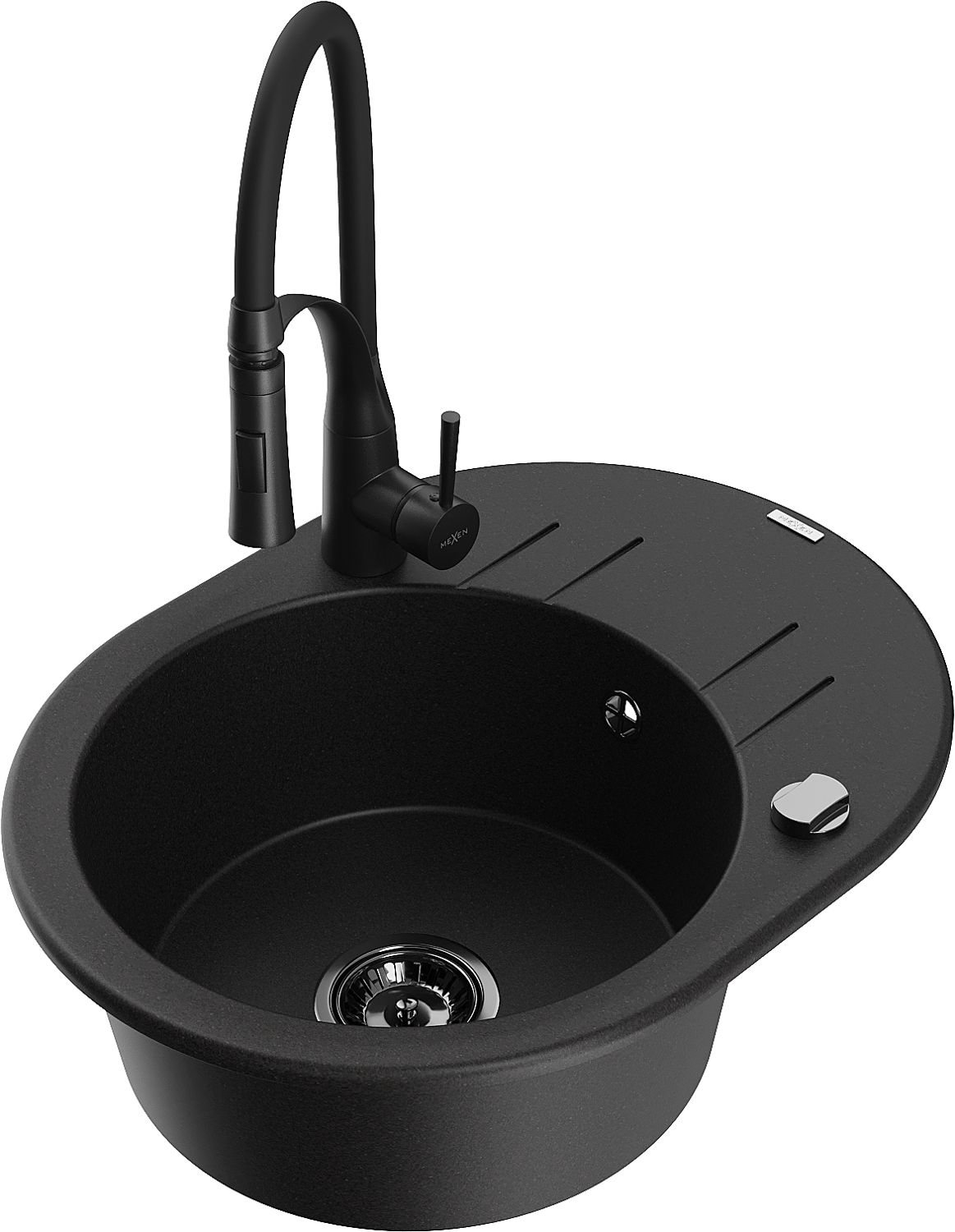 Гранитна мивка Mexen Kevin с 1 отделение, отцедник и кухненски смесител Aster, черен - 6517-77-73450-70-B