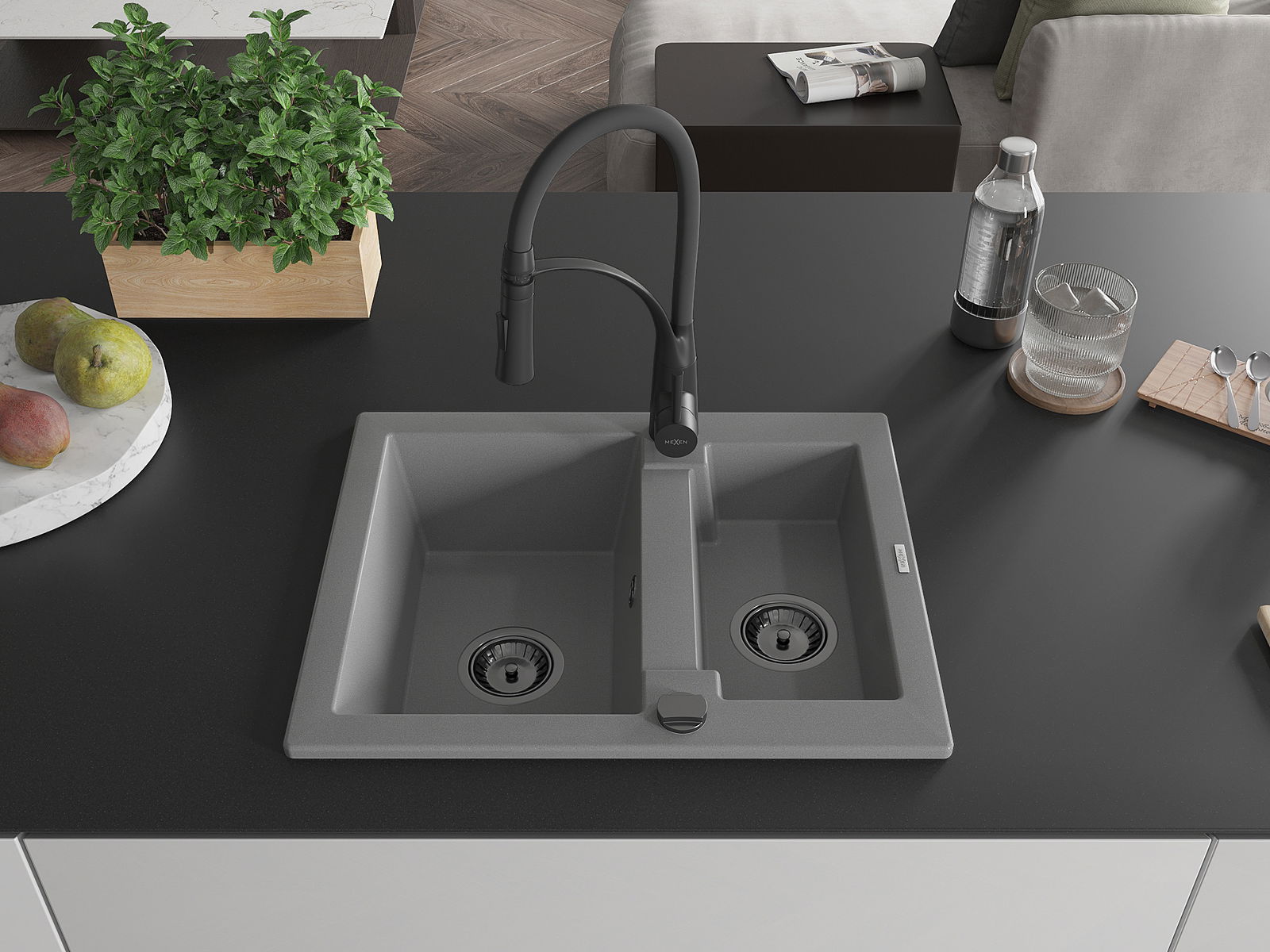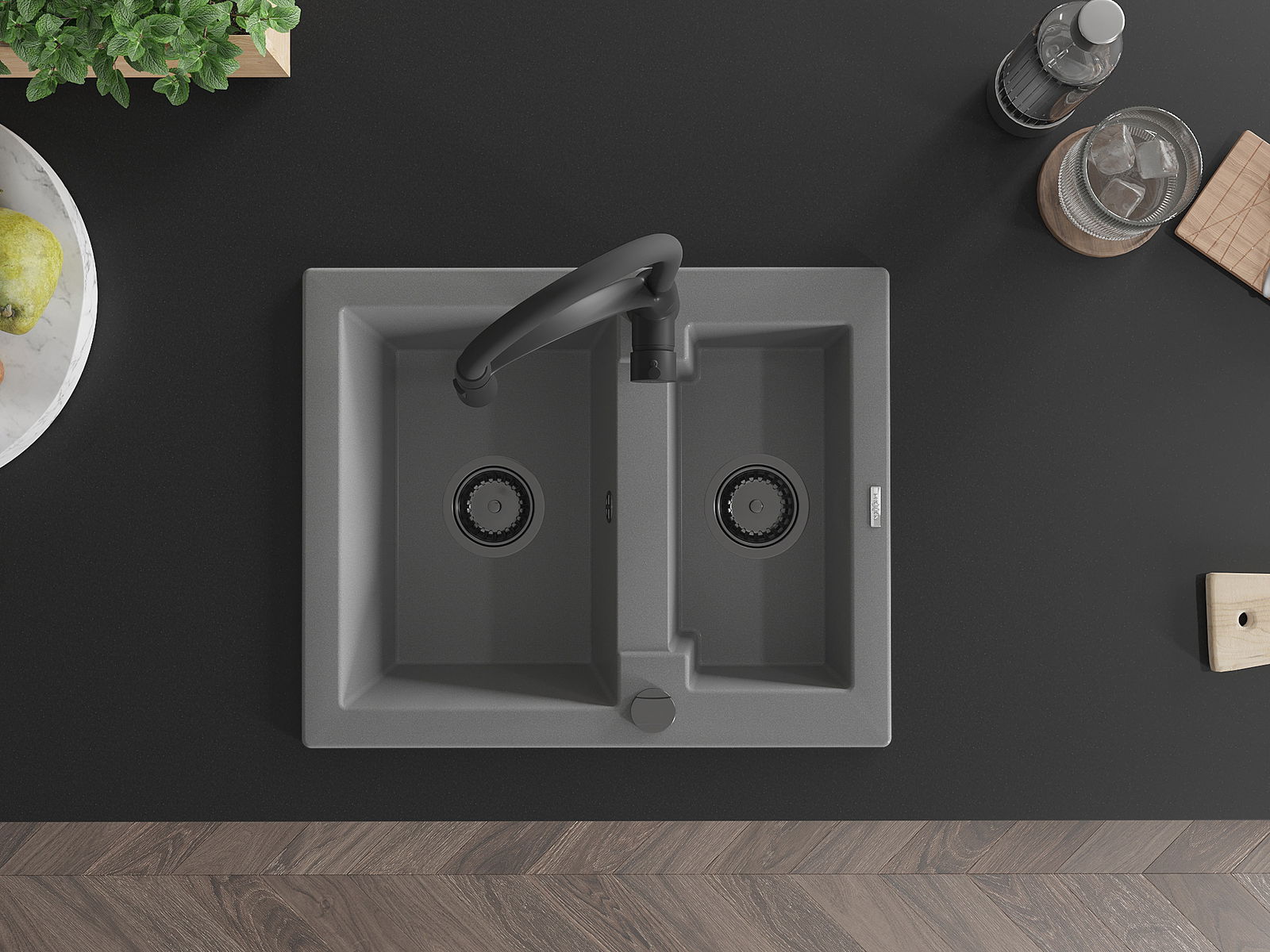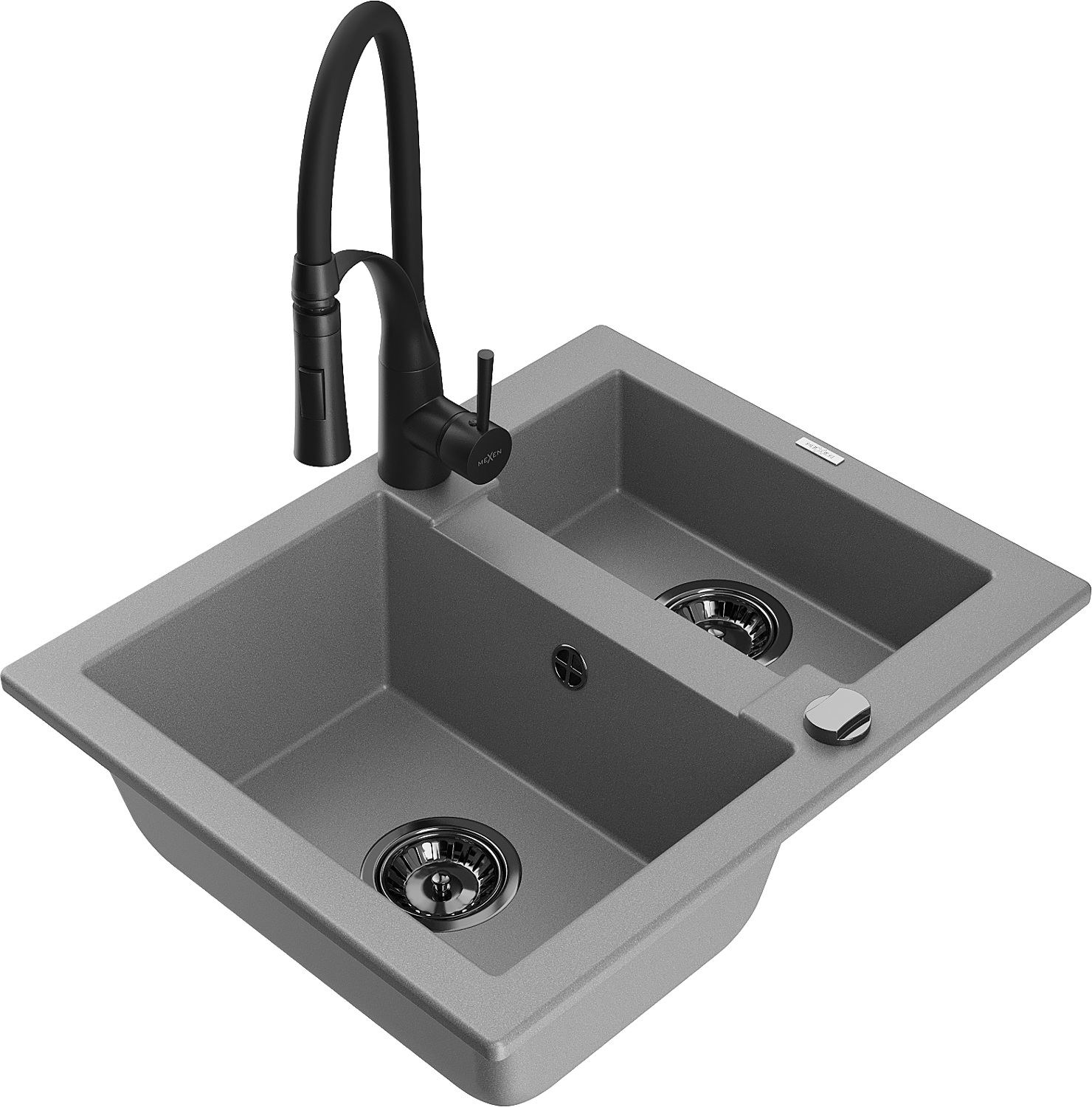 Mexen Carlos гранитна мивка 1,5 камери с кухненски смесител Aster, сив - 6518-71-73450-70-B