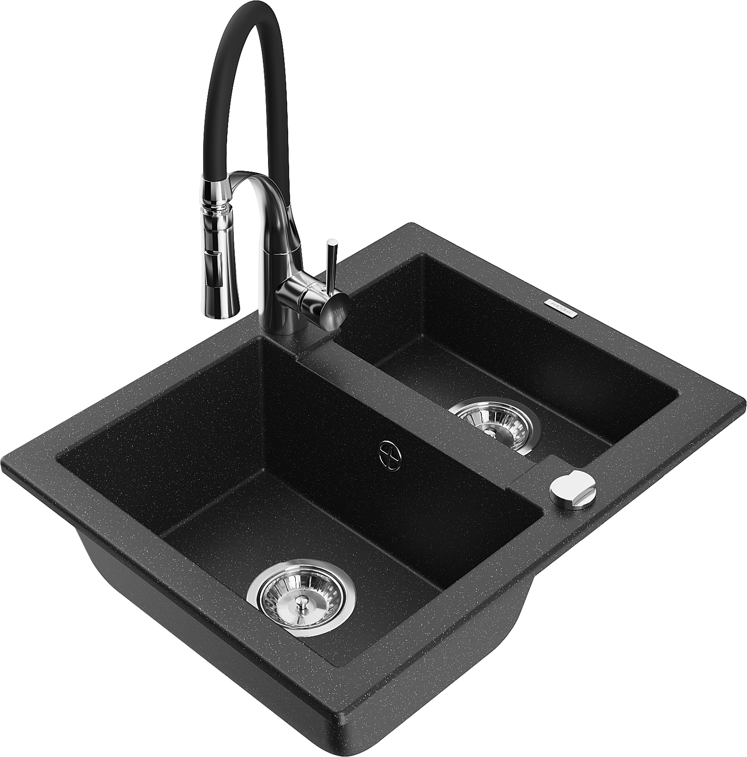 Mexen Carlos гранитна мивка 1,5-коморна с кухненски смесител Aster, черен/сребърен металик - 6518-73-73450-07
