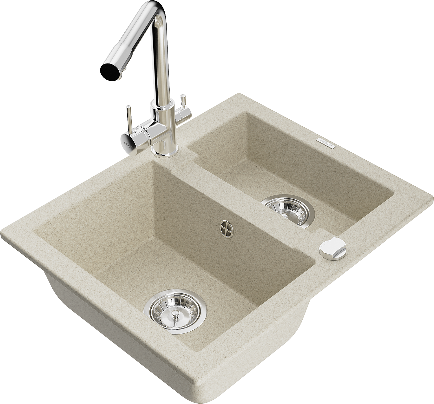 Mexen Carlos гранитна мивка с 1.5 отделения с кухненски смесител Duero, бежов - 6518-69-671600-00