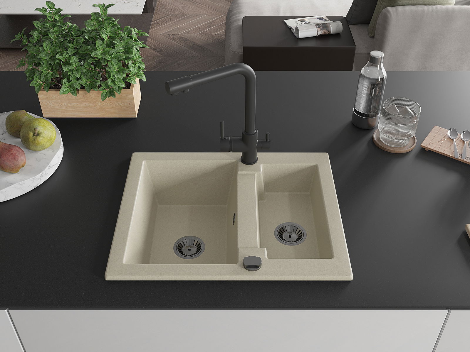 Мивката е направена от висококачествен гранит. Това е елегантно и най -вече практично допълнение към всяка кухня, независимо от нейния стил. Висококачествената и гранитна издръжливост осигуряват много години употреба.