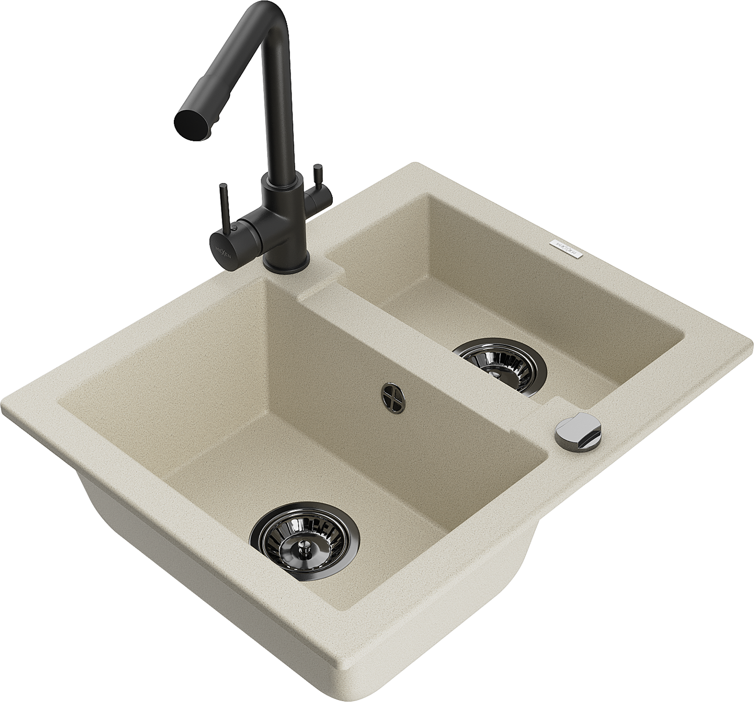 Mexen Carlos гранитна мивка 1,5-камерна с кухненски смесител Duero, бежова - 6518-69-671600-70