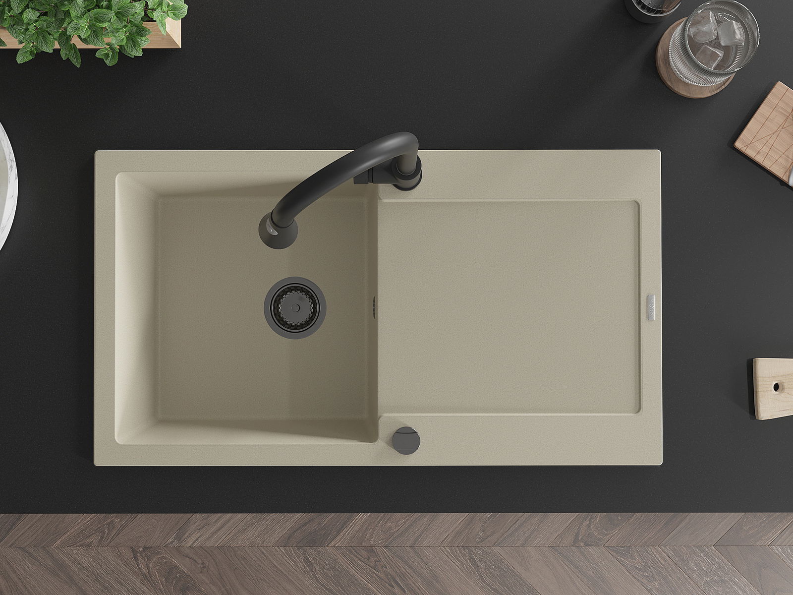 Мивката е направена от висококачествен гранит. Това е елегантно и най -вече практично допълнение към всяка кухня, независимо от нейния стил. Висококачествената и гранитна издръжливост осигуряват много години употреба.