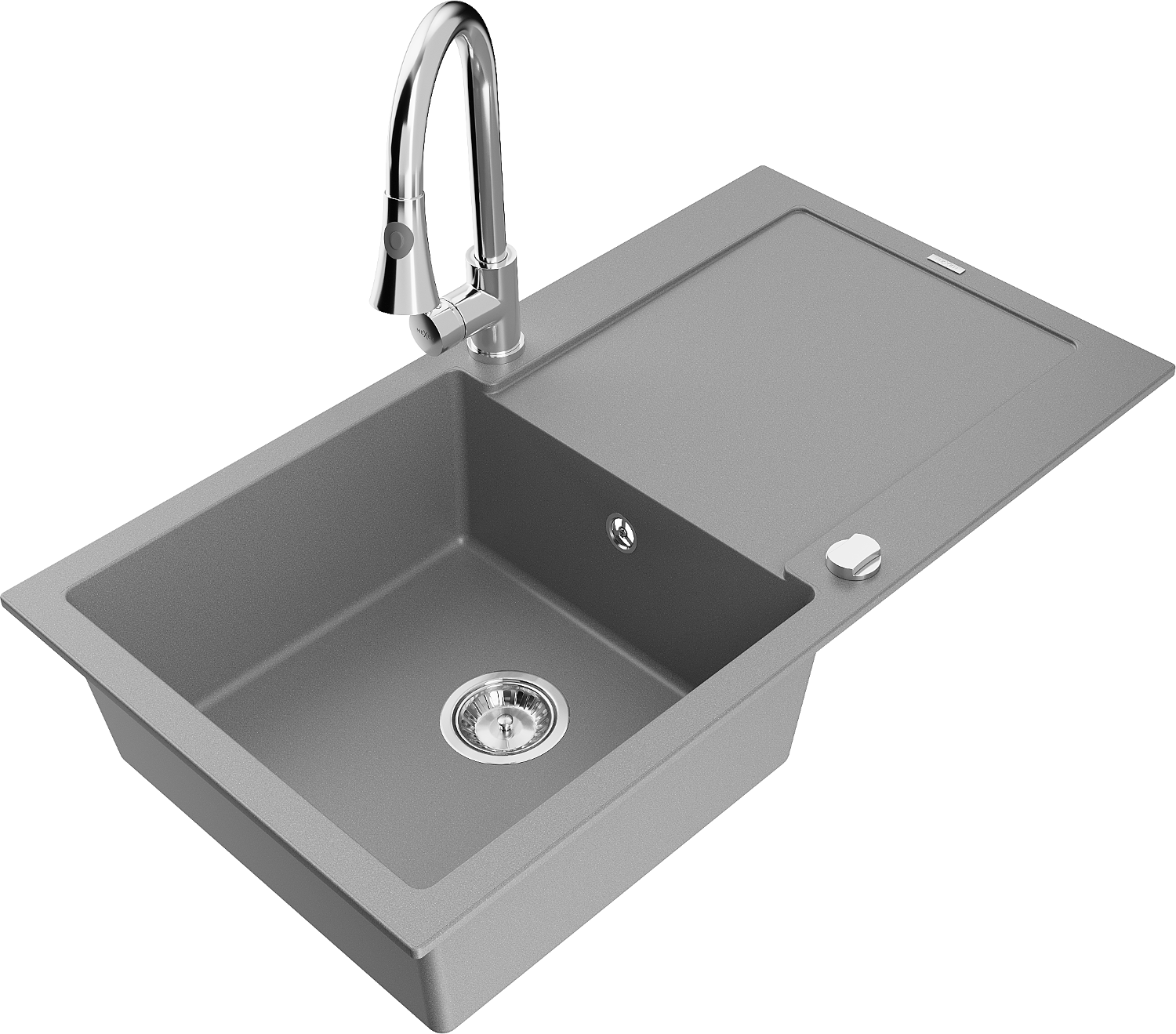 Mexen Leo гранитна кухненска мивка с 1 корито с отцедник и кухненски смесител Elia, сив - 6501-71-670101-00
