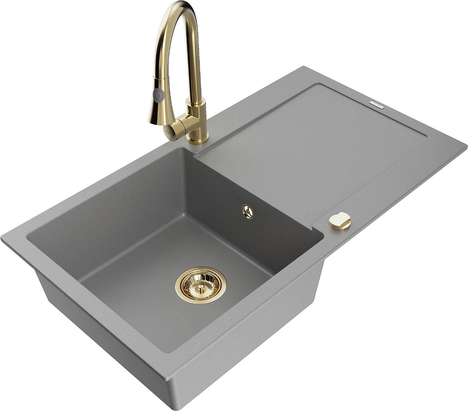 Mexen Leo гранитна мивка с 1 отделение и отцедник и кухненски смесител Elia, сив - 6501-71-670101-50