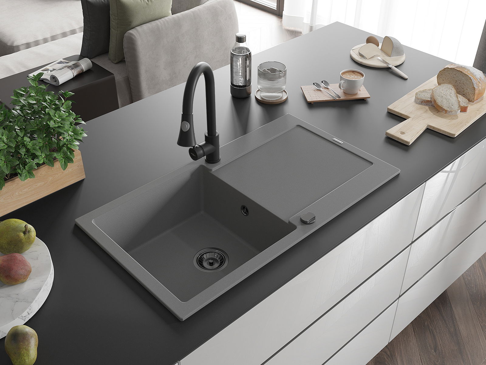 Мивката е направена от висококачествен гранит. Това е елегантно и най -вече практично допълнение към всяка кухня, независимо от нейния стил. Висококачествената и гранитна издръжливост осигуряват много години употреба.