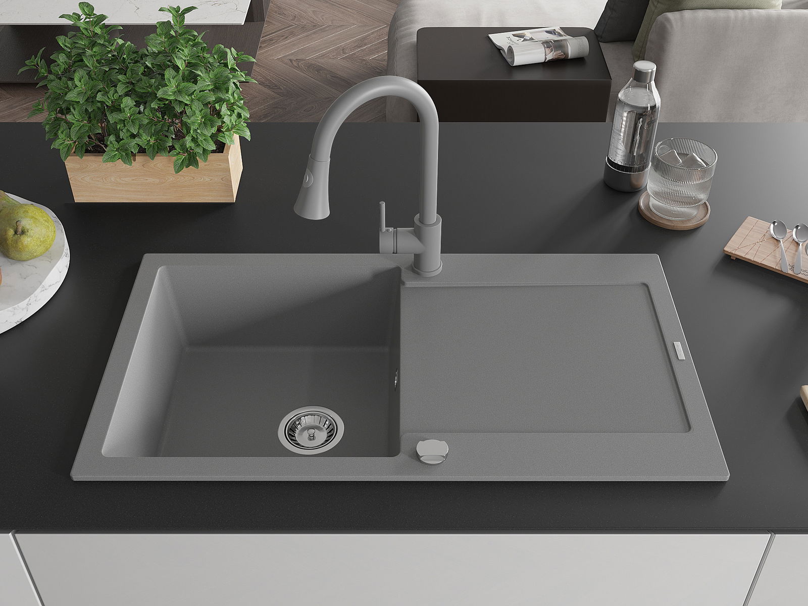 Mexen Leo композитна мивка с 1 корито и батерия Elia, сива - 6501-71-670101-71