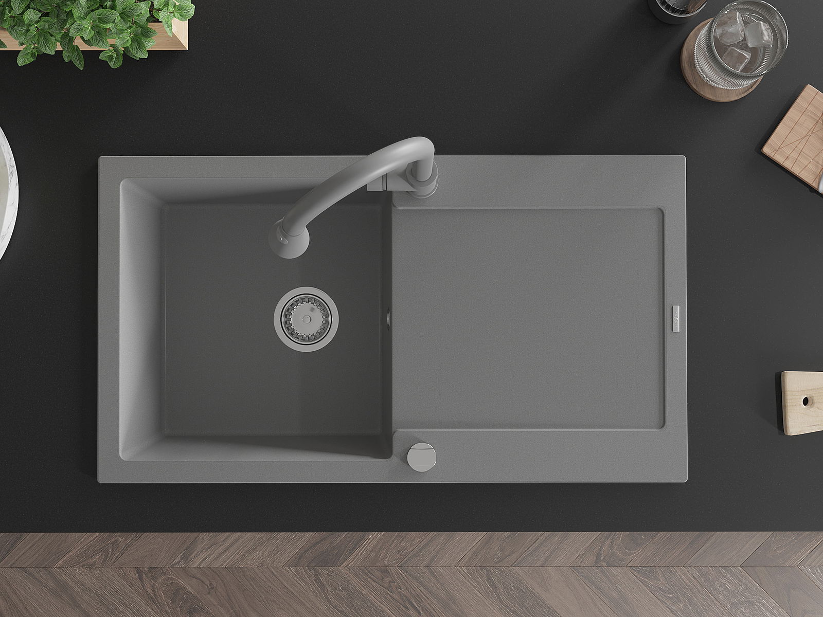 Мивката е направена от висококачествен гранит. Това е елегантно и най -вече практично допълнение към всяка кухня, независимо от нейния стил. Висококачествената и гранитна издръжливост осигуряват много години употреба.