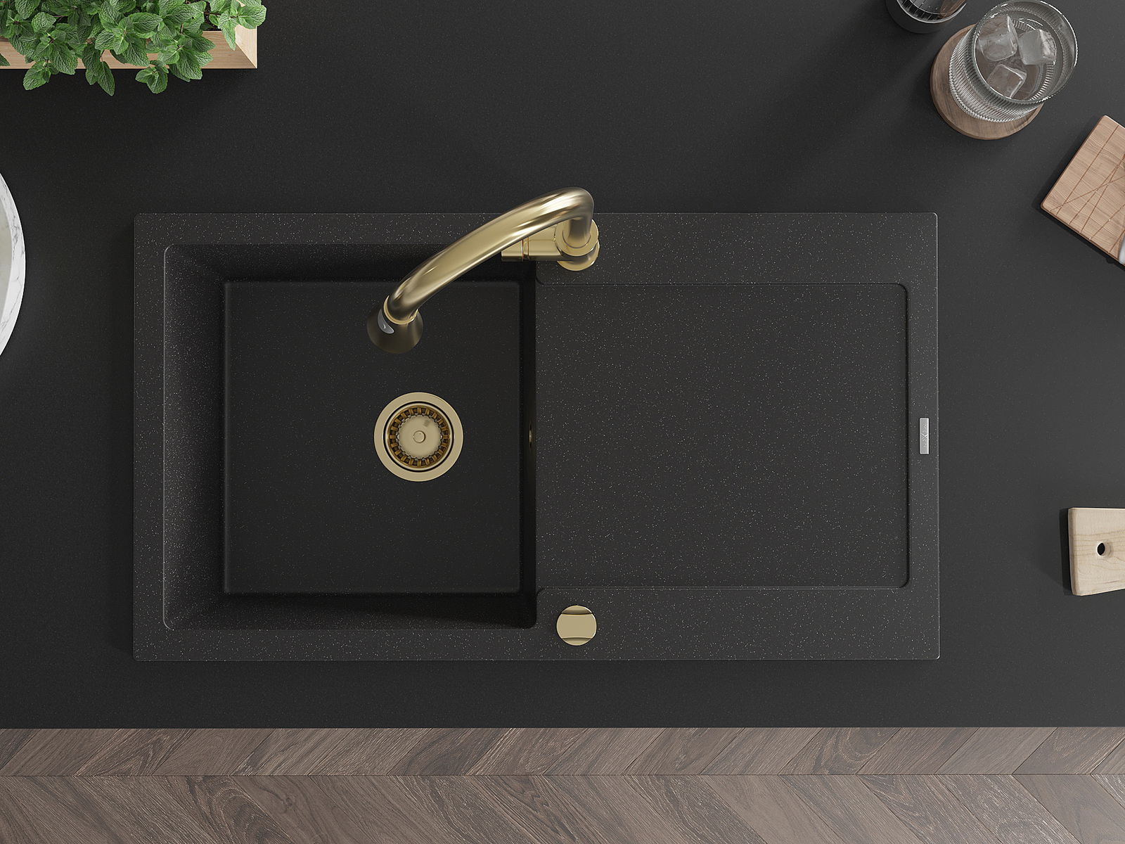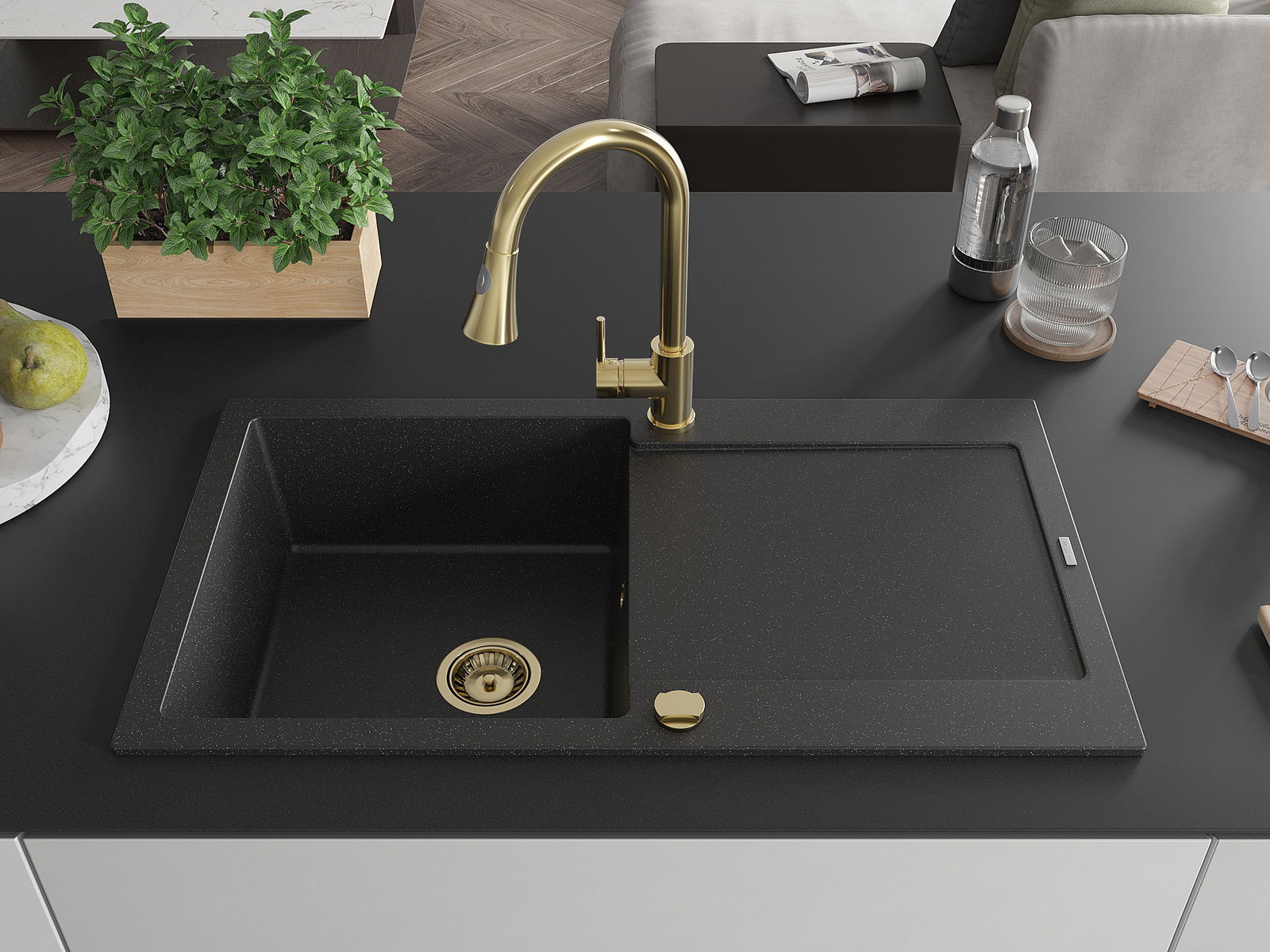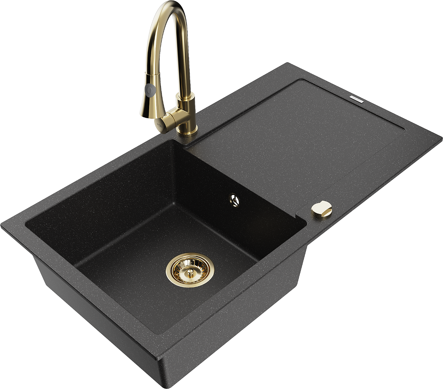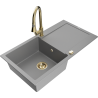 Mexen Leo еднокамерен гранитен мивка с дренаж и кухненски смесител Elia, черен/сребрист металик - 6501-73-670101-50