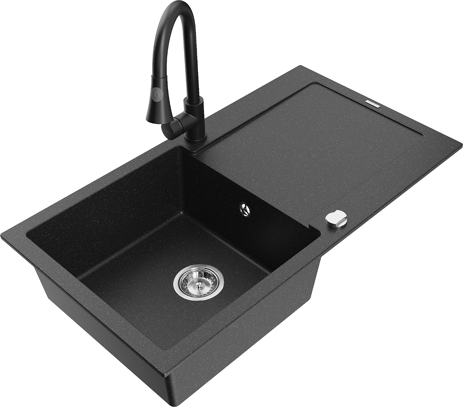 Mexen Leo гранитна мивка с 1 камера със сушилник и кухненски смесител Elia,