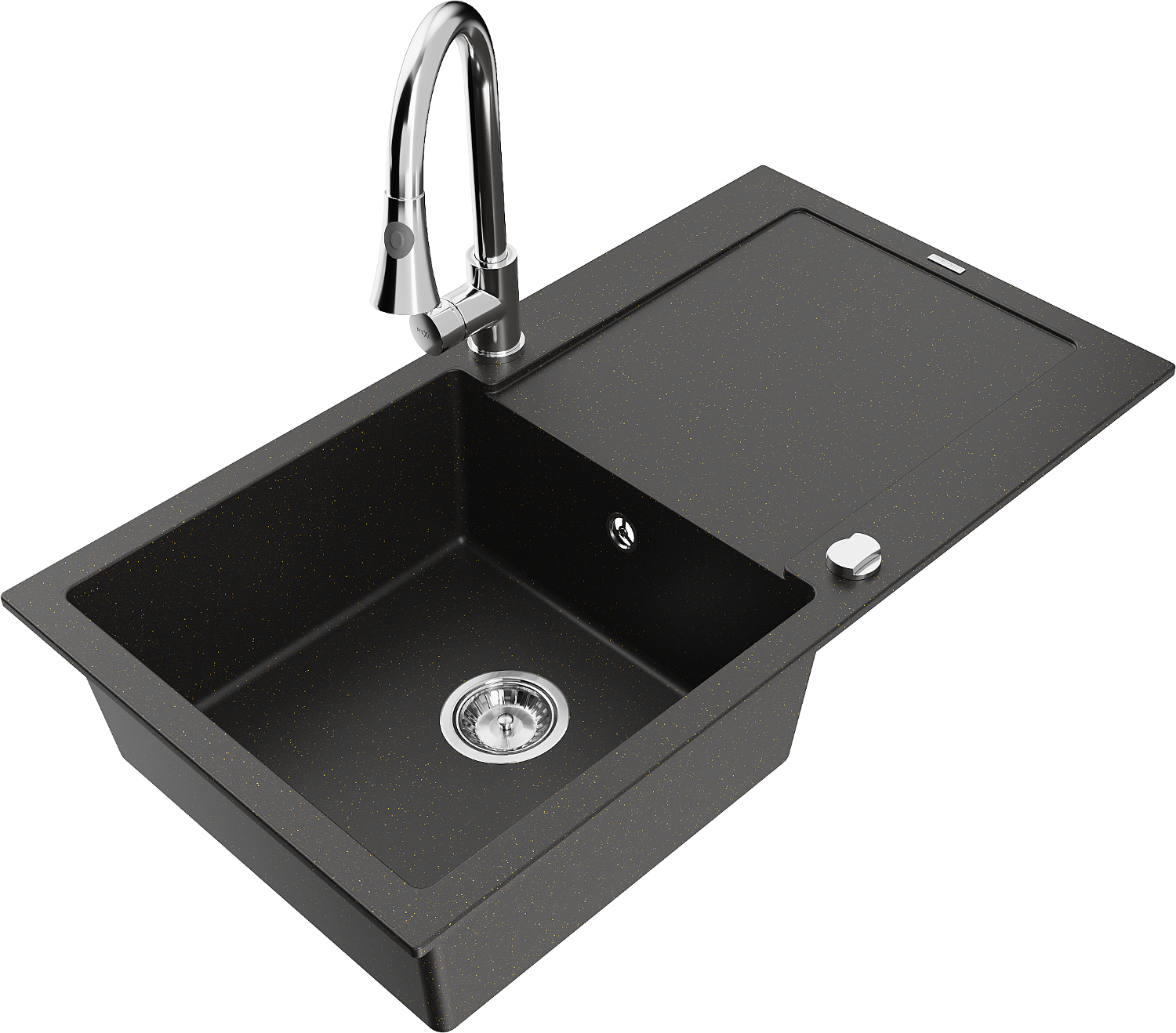 Мивката е направена от висококачествен гранит. Това е елегантно и най -вече практично допълнение към всяка кухня, независимо от нейния стил. Висококачествената и гранитна издръжливост осигуряват много години употреба.