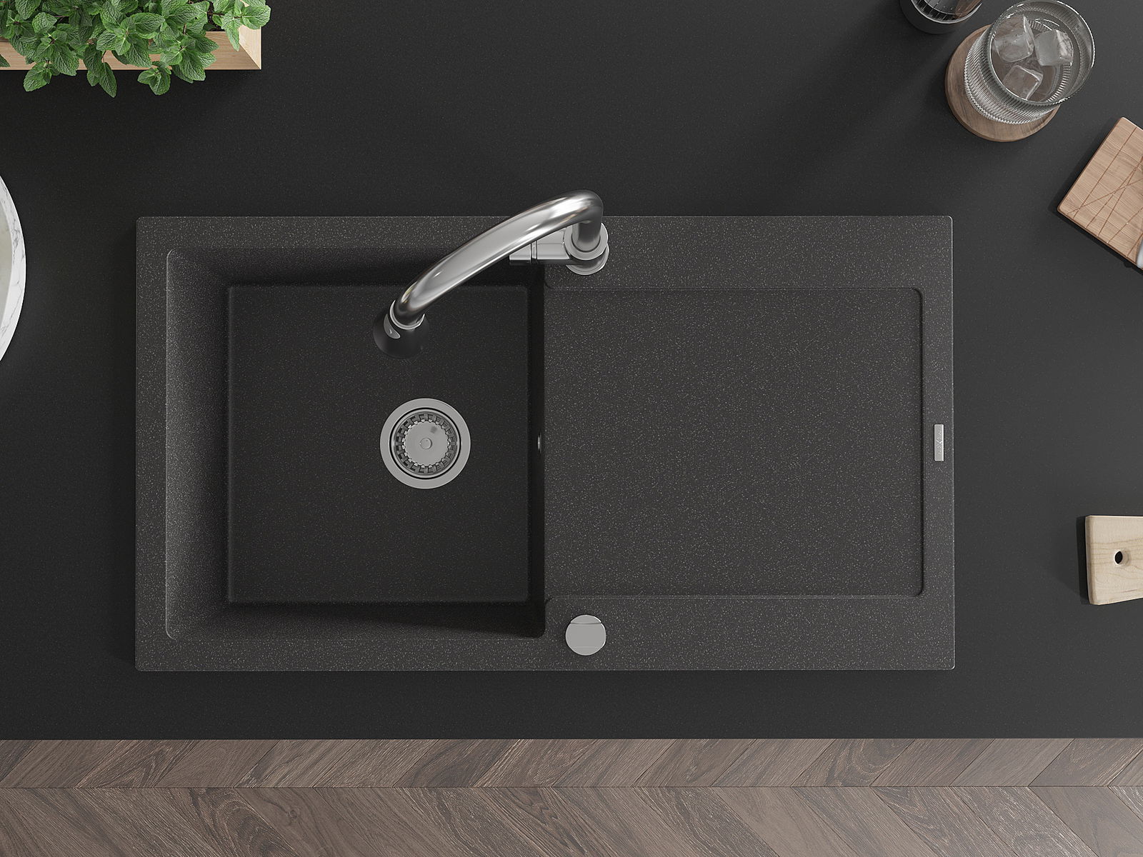 Мивката е направена от висококачествен гранит. Това е елегантно и най -вече практично допълнение към всяка кухня, независимо от нейния стил. Висококачествената и гранитна издръжливост осигуряват много години употреба.
