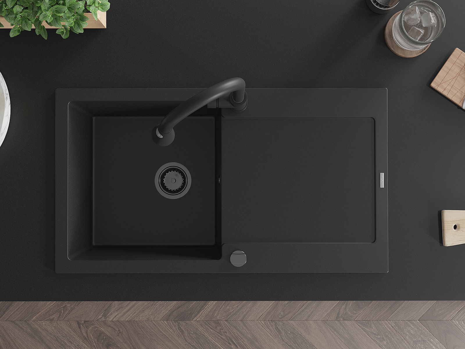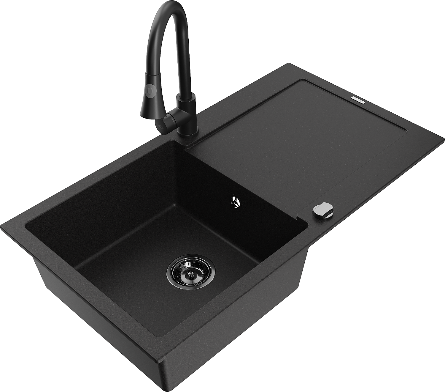 Mexen Leo мивка от гранит с 1 отделение с отцедник и кухненски смесител Elia, черен - 6501-77-670101-70-B
