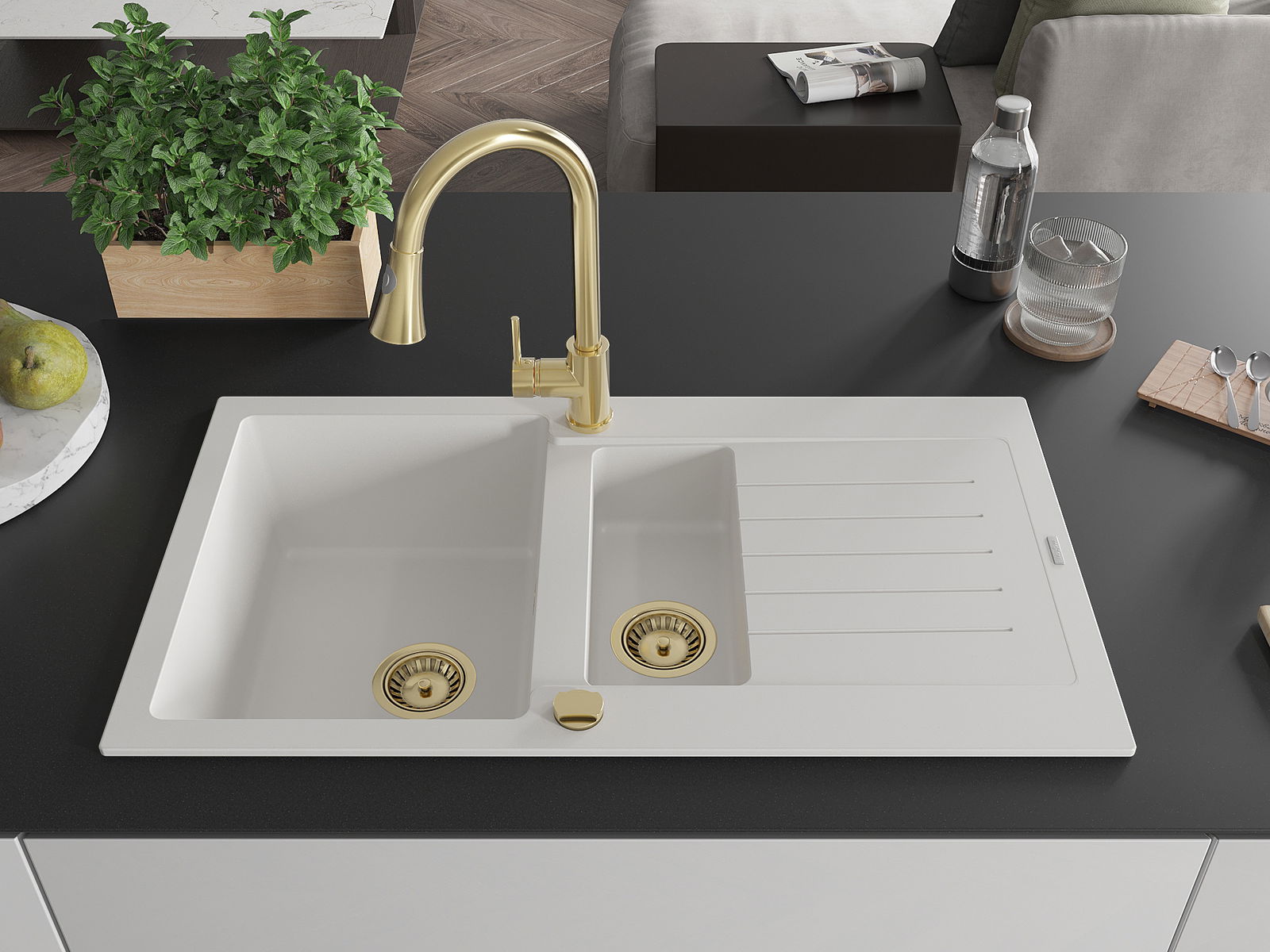 Мивката е направена от висококачествен гранит. Това е елегантно и най -вече практично допълнение към всяка кухня, независимо от нейния стил. Висококачествената и гранитна издръжливост осигуряват много години употреба.